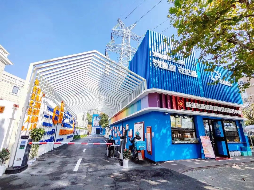 记者在现场看到,4000平方米的党群服务中心由许多色彩斑斓的集装箱构成,服务内容可谓相当丰富——包括职工书屋、换电站、小卖部、社区食堂、胶囊公寓、急救消防站等。普陀区聚焦破解新就业群体“生活、办事、保障、乐活、发展”五大难题,凝聚各方力量打造了20组功能各异的服务空间。