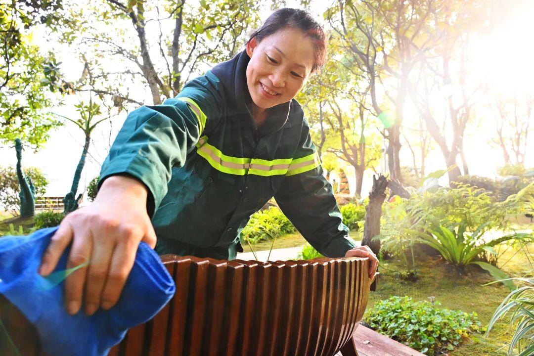 一流的城市界面需要一支一流的保洁队伍,为了交上一份让市民满意的答卷,东虹公司派出由全国劳模周家玲领衔,工人先锋号成员组成的团队负责该滨江区域的保洁任务。春节期间,已有52名东虹公司的“城市美容师“参与保洁,擦亮城市的窗口。看到游客们在此驻足欣赏陆家嘴、外滩“世纪同框”的美景,还能感受景观小品、鲜花绿植的意趣,全国劳模周家玲表示:“在这里工作不仅心情愉悦,而且精神饱满,希望在不久的将来可以带家人一起来游玩。”