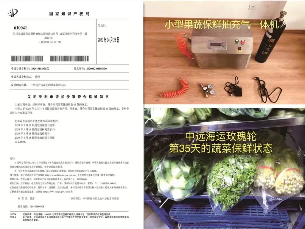 头图为“一种适应远洋船舶的果蔬保鲜方法”实效