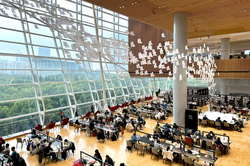 头图为上海图书馆东馆公共阅读区域坐满了前来阅读的职工。