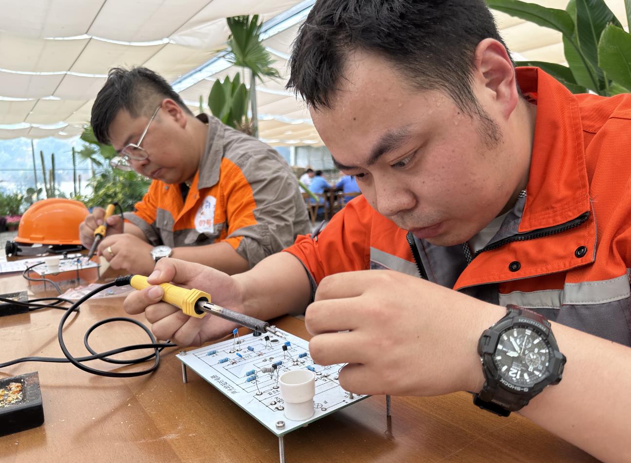 选手在“声光控灯电路焊接”项目全神贯注焊接