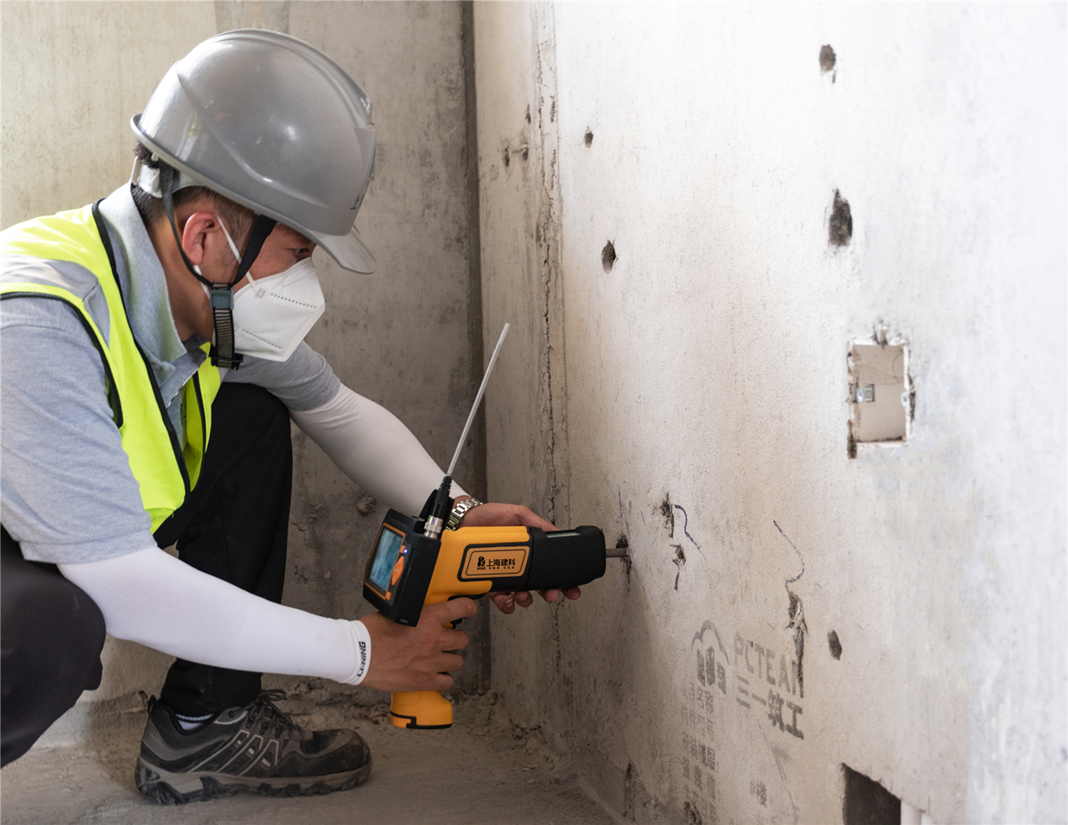 从外观上看,一体式套筒灌浆饱满度内窥镜检测仪是一个类似手枪的设备,主体为黄色,个头不大,成员们为它取名叫“小黄”。只需给建筑开个指甲盖儿大小的口子,细细长长的探头伸进去,工作人员通过实时呈现在设备数字显示屏上的数据,就能清晰了解建筑内部的“健康状况”。整个过程如同是给建筑做了一个“胃肠镜”和“拍片子”,同步出具“诊断数据”,助力工作人员对建筑节点的连接情况全面掌握。