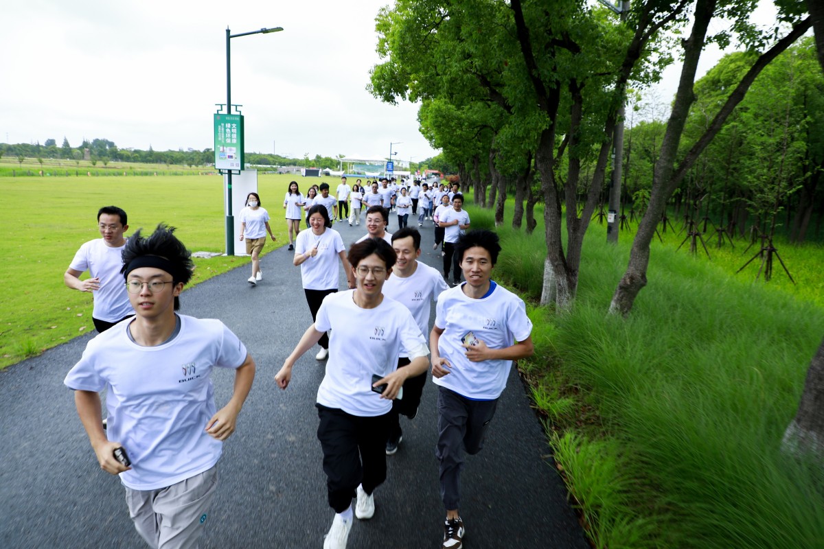 职工们沿着步道奔跑,用脚步丈量每一处美景