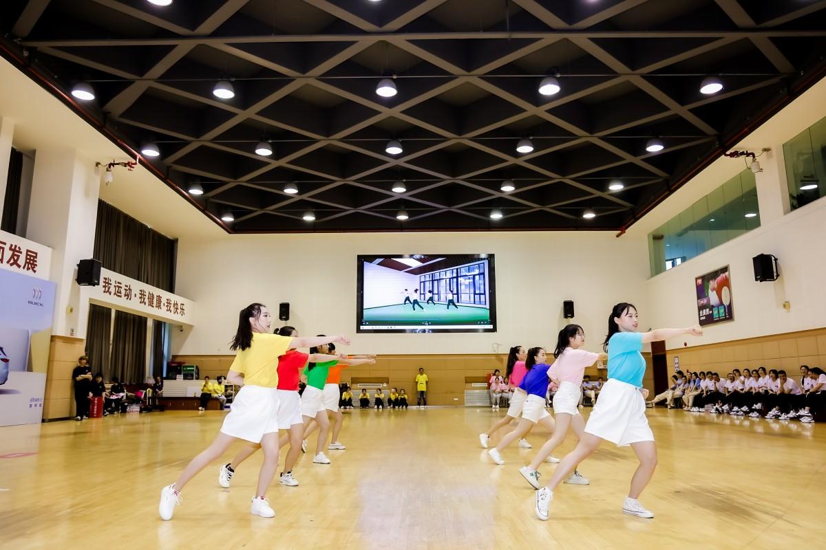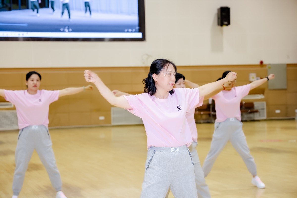 健身操精英赛现场,职工们舞动的身姿,展现团结向上的精神风貌