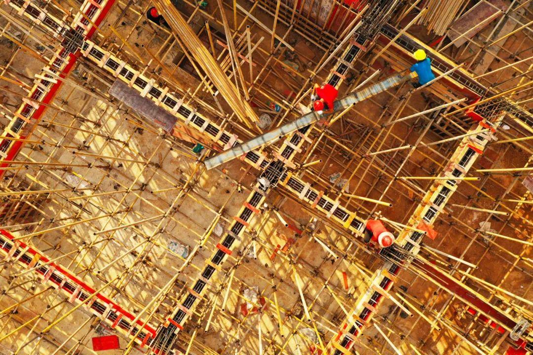 ↑7月2日,湖南省永州市新田县润兴城建设工地,工人们正抓紧施工建设。工人日报通讯员 刘贵雄 摄
