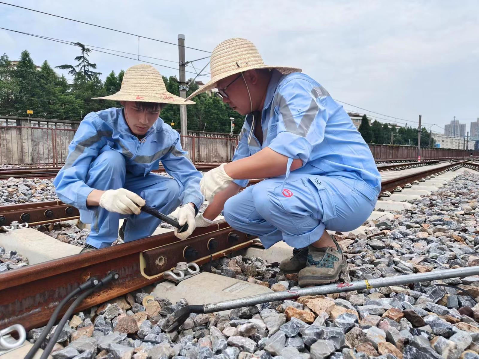 高温巡查是一项“苦活累活”,对检修工来说不仅要身体素质好,还要有极强的意志力,因为在太阳暴晒的同时,工人还要趴在50多℃的道床上检测钢轨的几何误差,不能有一丝松懈和马虎。