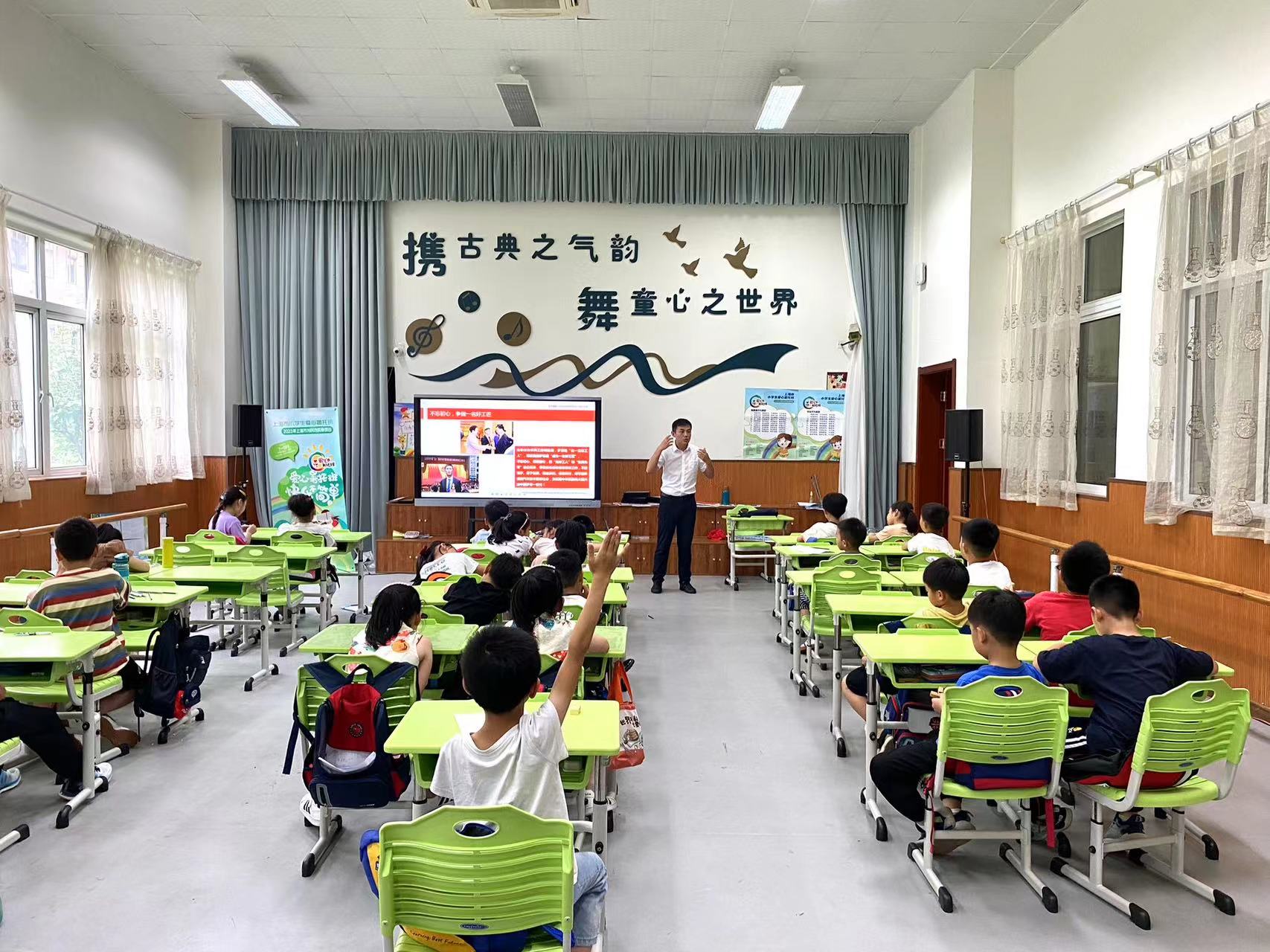 全国劳模胡振球在奉贤思言小学爱心暑托班授课。