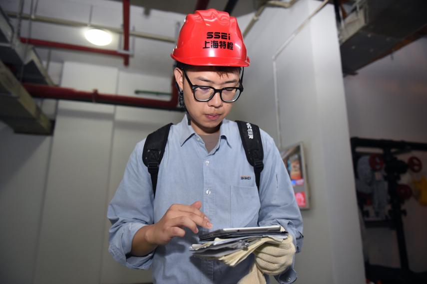在这里,闷热与灰尘作伴,更需要检验人员的“火眼金睛”。“电梯安全性能要求较高,只要有一个地方没有复位,电梯就关不上。”按照要求,张小虎要检查每层层门,包括门的运行和导向、自动关闭装置、门的锁紧与闭合等,这样才能保证居民乘梯安全。