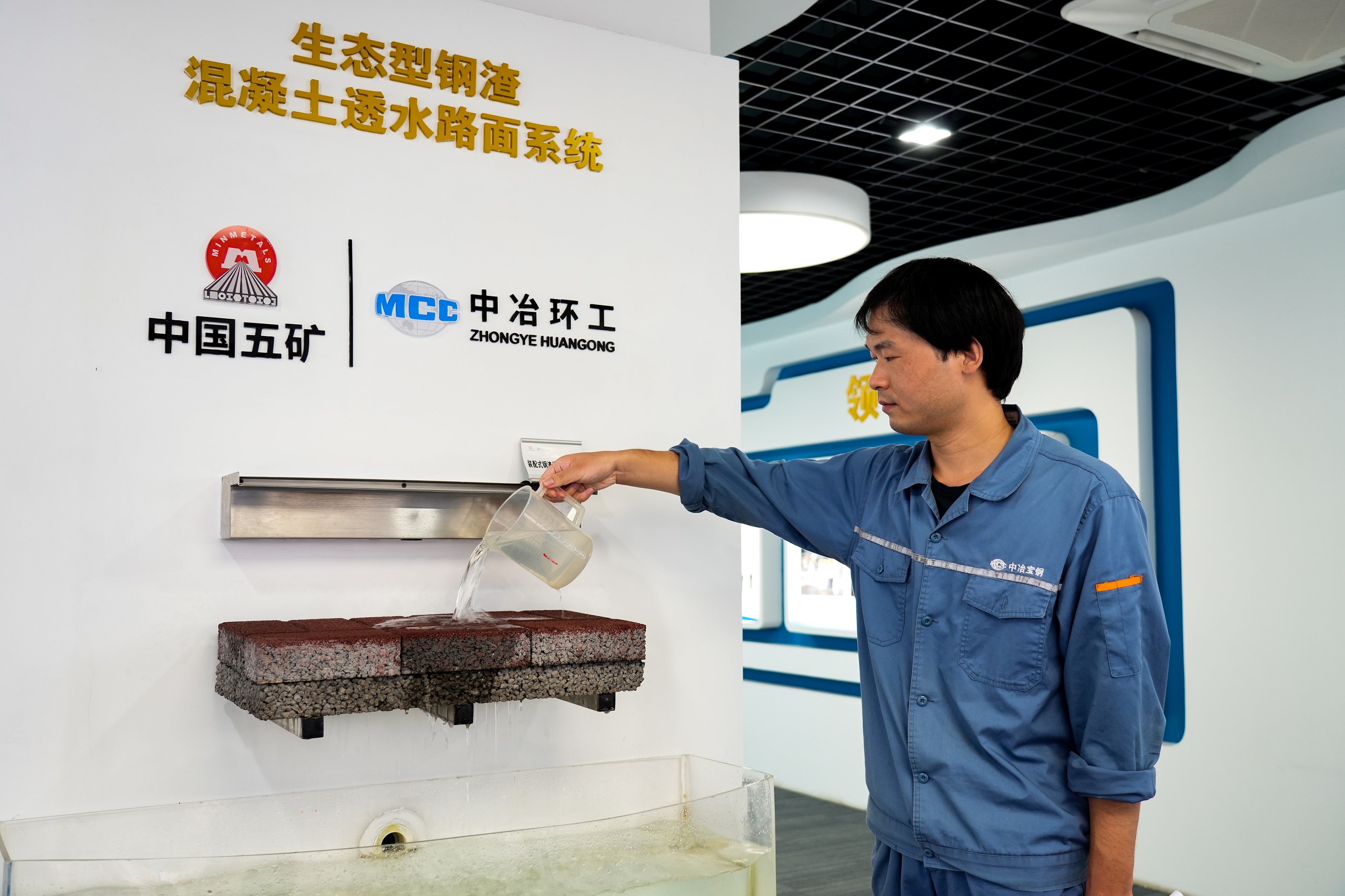 钢渣的循环处理,关系到工业产业绿色发展。颜凡骄傲地说到,如今,世博园波兰馆、进博会场馆外、杨浦滨江渔人码头、迪士尼指挥部、卢湾体育馆等长三角及周边重大工程的生态透水景观路面,都能看到中冶宝钢生产的透水砖。