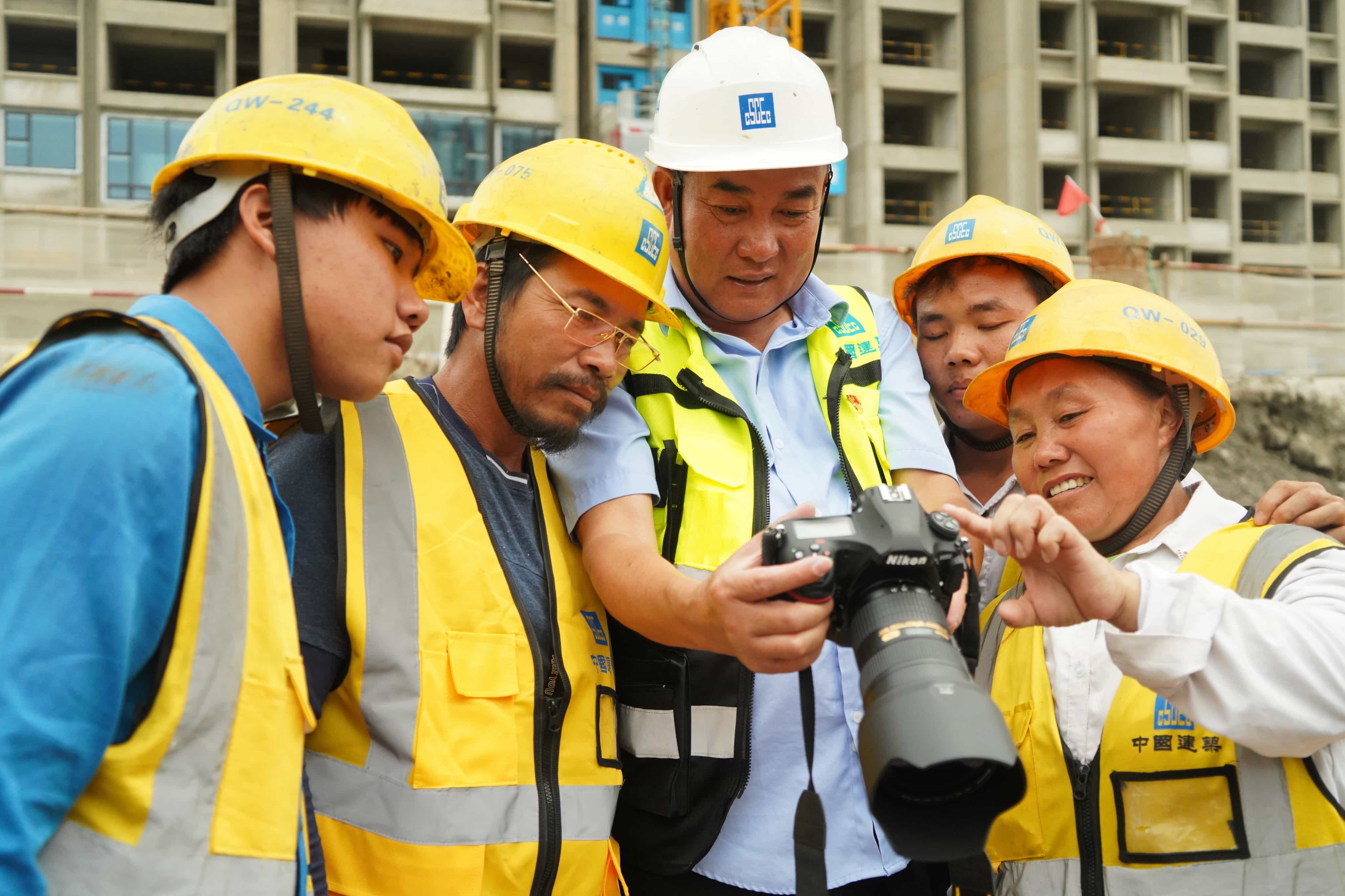中建八局三公司建筑产业分公司的员工们,正穿着“建证·军魂匠心 五彩建产”党建品牌的T恤衫,用手指比划出统一姿势,排列组合成同心圆,一起绘制这多彩美好的建筑产业分公司。建筑产业分公司的每名员工都是参与者、奉献者、建证者、共享者,只要大家心往一处想,智往一处谋,劲往一处使,我们相信,五彩缤纷的未来图景中必然要有每一名奋斗者的身影。