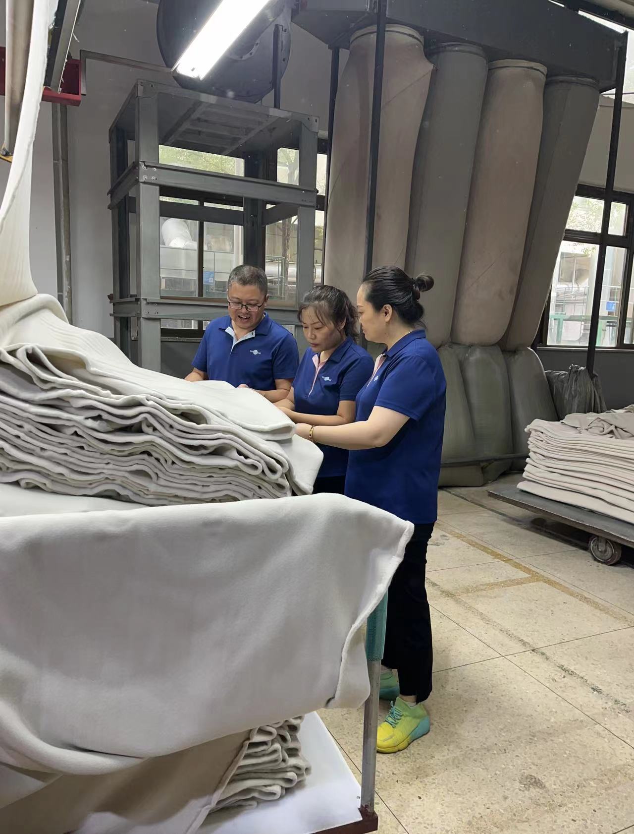 何国英时刻关注新面料在生产中出现的质量问题并致力于寻找解决方案。“新产品在投入生产时随时会出现无法预期的问题。进入量产后,必须寸步不离。”每天一早,她便来到公司,回顾刚过去的一天里生产的所有面料是否有品质问题,以确保产品的及时交货。