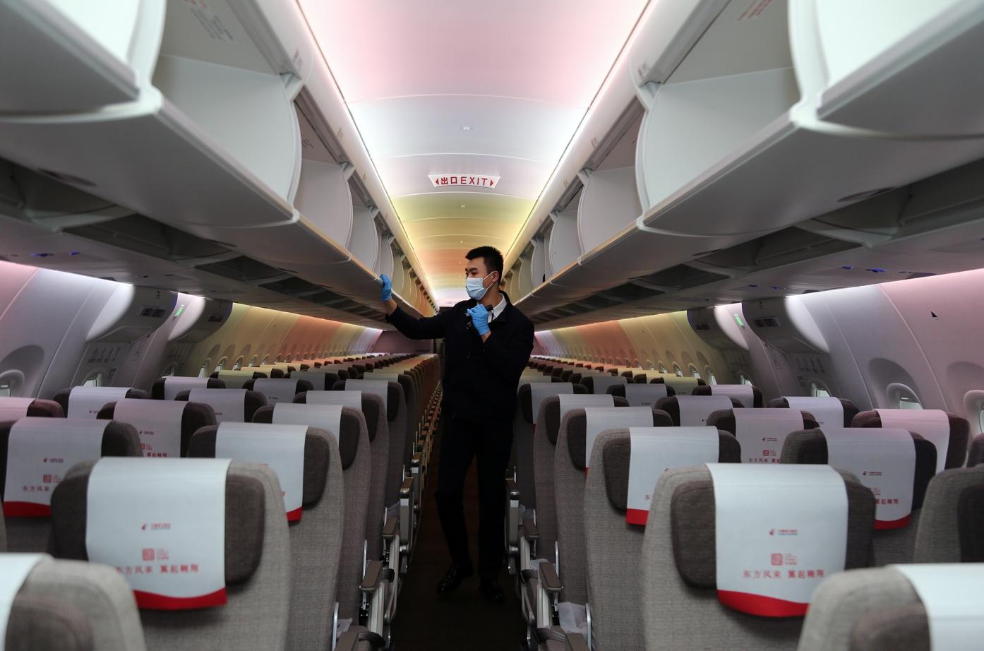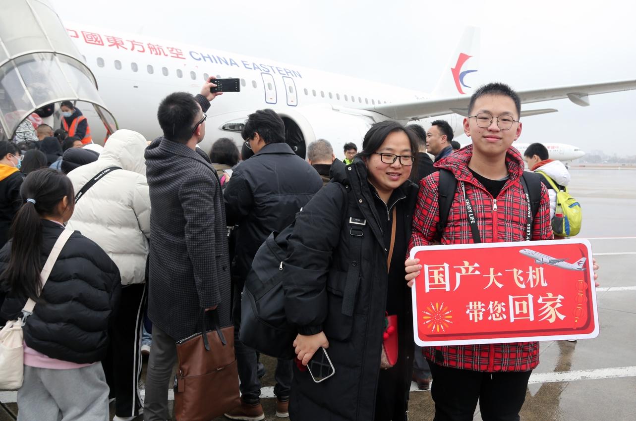 乘客和国产大飞机C919合影