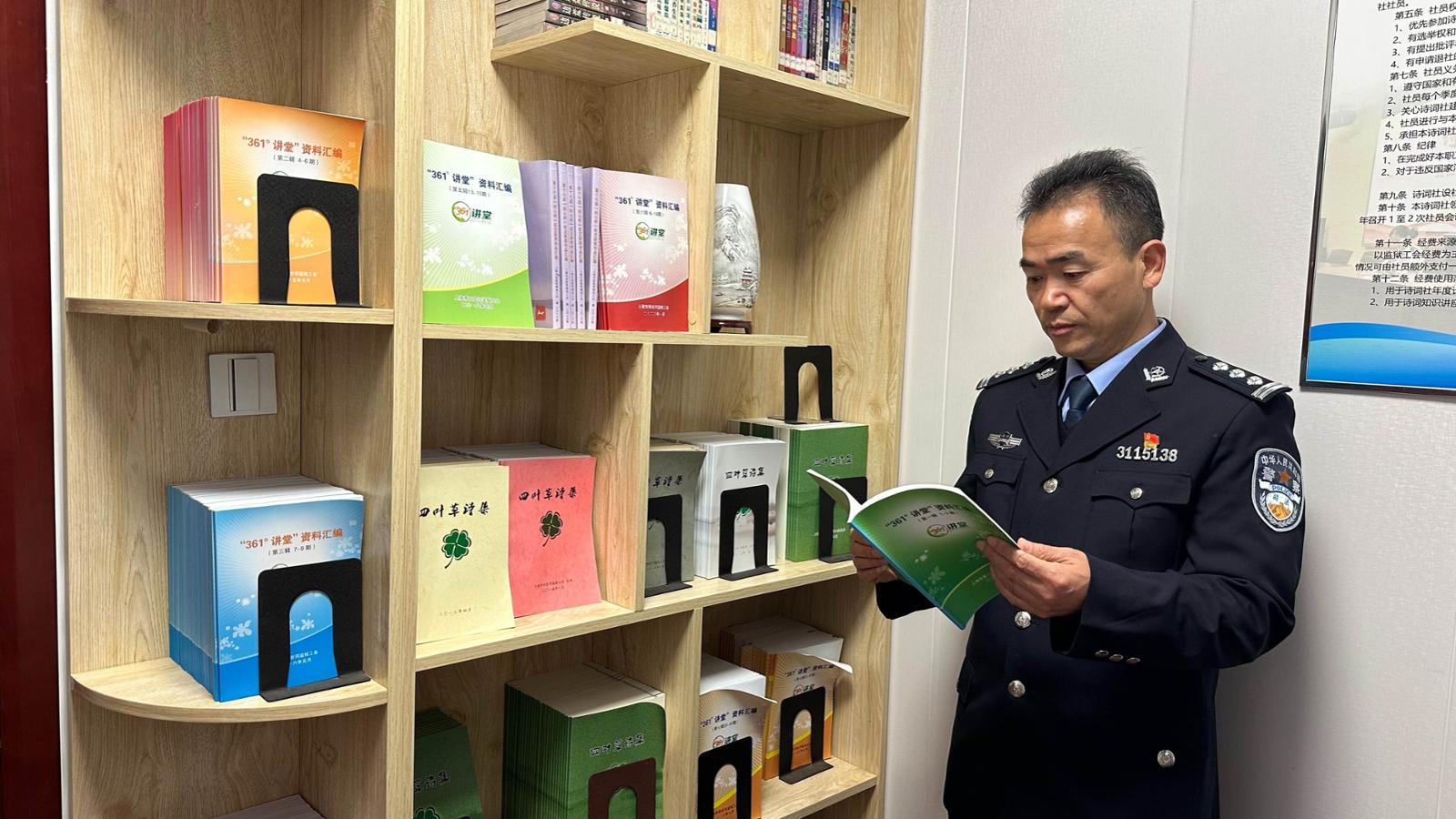 越过办公区,步入这座三层独栋小楼,仿佛闯入了一片宁静的知识海洋。三楼藏书室宽敞明亮,一排排整齐的书架上分类摆满书籍,从中外名著到科学普及,从历史文学到生活百科,应有尽有。书屋内光线柔和,环境安静,只有偶尔传来的翻书声和窗外的鸟鸣,营造出一种静谧宜人的阅读氛围。记者注意到,书屋的一角设有电子阅览室,方便民警们查阅资料、了解时事动态。