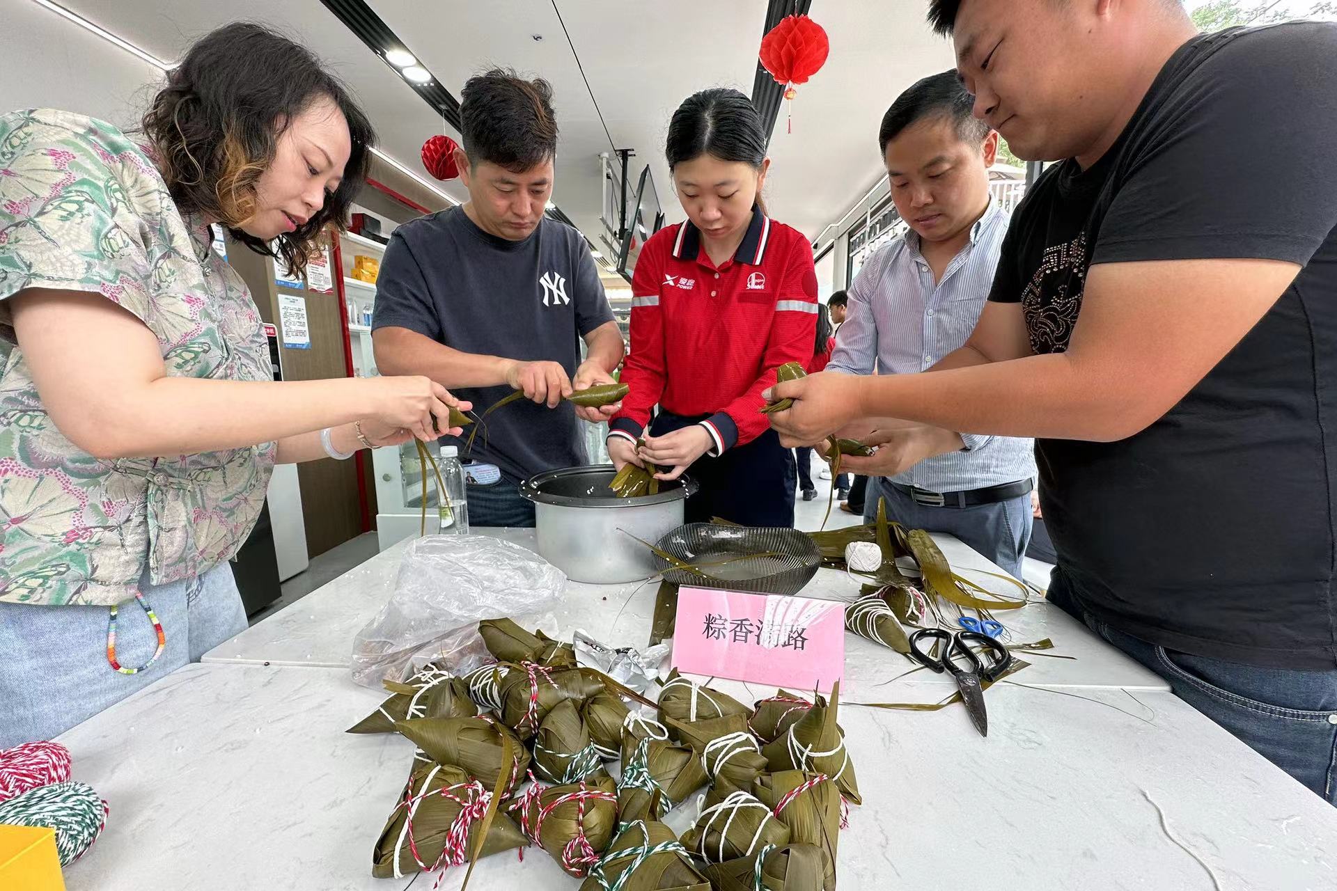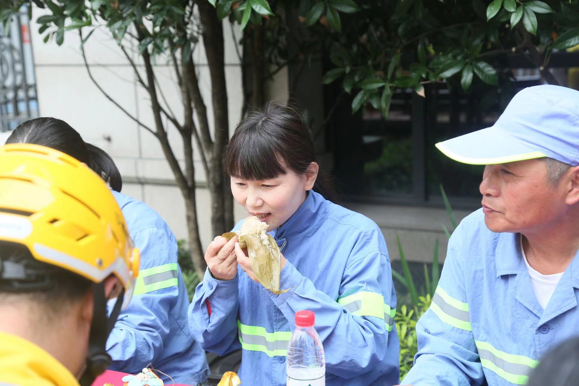 宝山区职工服务中心爱心接力站邀户外职工品粽子