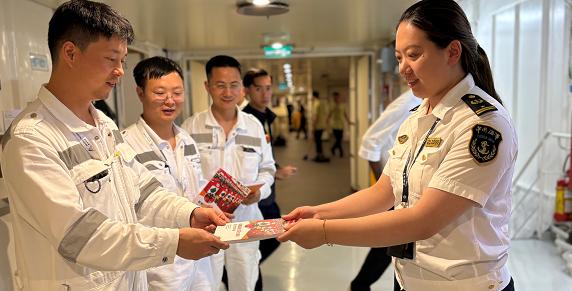 宝山海事局巾帼班组成员赠送船员《安全管理手册》