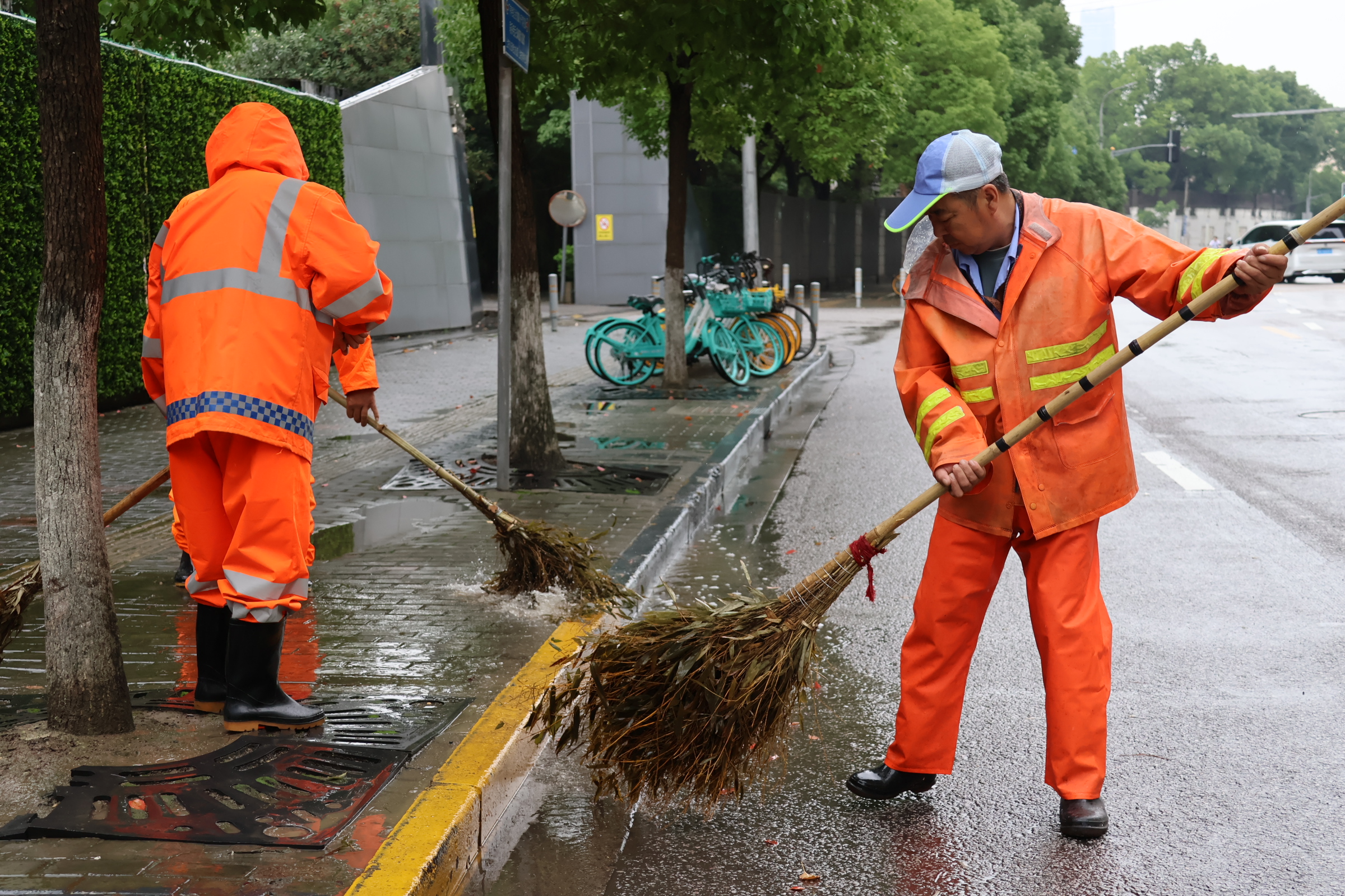 “下暴雨的时候,道路几乎24小时离不开人,要保证自己负责的道路上每一个下水道都畅通。”道路保洁班组长李新美告诉记者,下雨天的清洁难点在落叶,雨水把落叶黏在地上,比平时更难清扫一些。雨水来势汹汹,一上午,她和整个班组冒雨作业,三两结对,一人及时清扫路面积水,一人清理排水口及路面漂浮垃圾,减少对过往行人和车辆的影响,确保排水畅通和路面整洁。
