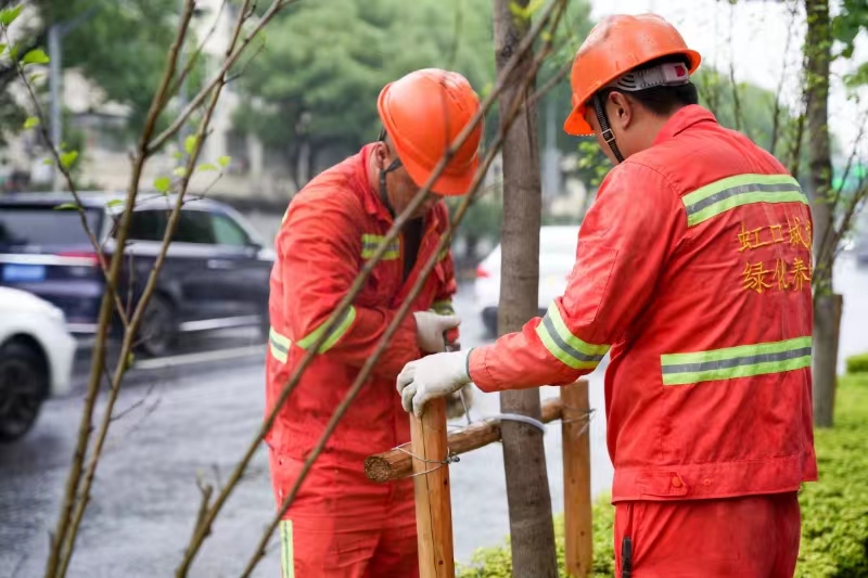 李英俊表示,在汛期来临前,公司就组织了多场应急抢险模拟演练,包括对树木倒伏带电情况的规范处置、断枝处置、登高车疏枝、利用电动扶正器对倾斜树木扶正等。此外,为保障市民生命财产安全和城市道路畅通,虹元园林公司还未雨绸缪提前做好准备,组织应急抢险队伍,第一时间处置道路树木断枝、倒伏等突发情况。