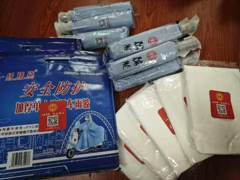 记者了解到,虹桥镇总工会也为环卫职工准备了轻便的一次性雨披和防水手机套,将其纳入梅雨季慰问用品范围,特别受到了职工们的点赞。