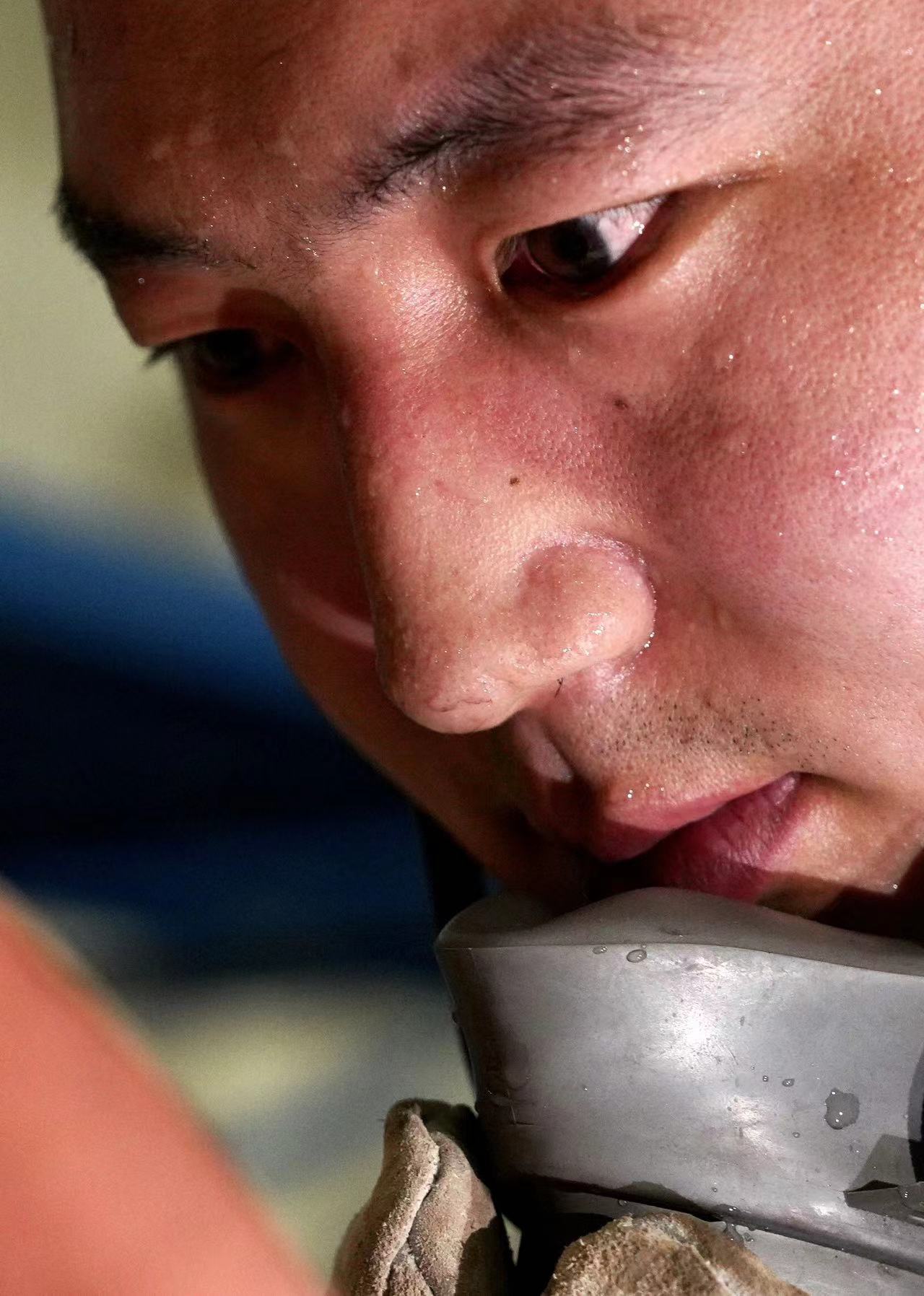 “越是专注越容易出汗,汗水流进一只眼睛里,就闭上一只用另一只。”王文坤说,有时候一天下来眼睛都是红红的,“但干的就是这个活儿,吃的就是这碗饭,不能对不起手里的这把焊枪。”电焊工作环境艰苦,能坚持下来并成为焊接高手的更少之又少。30岁的王文坤来自陕西西安,毕业后便进入上海电站辅机厂,如今已经成长为厂里拥有手工电弧焊、手工氩弧焊、手工气体保护焊“三个核电大证”的焊接能手。