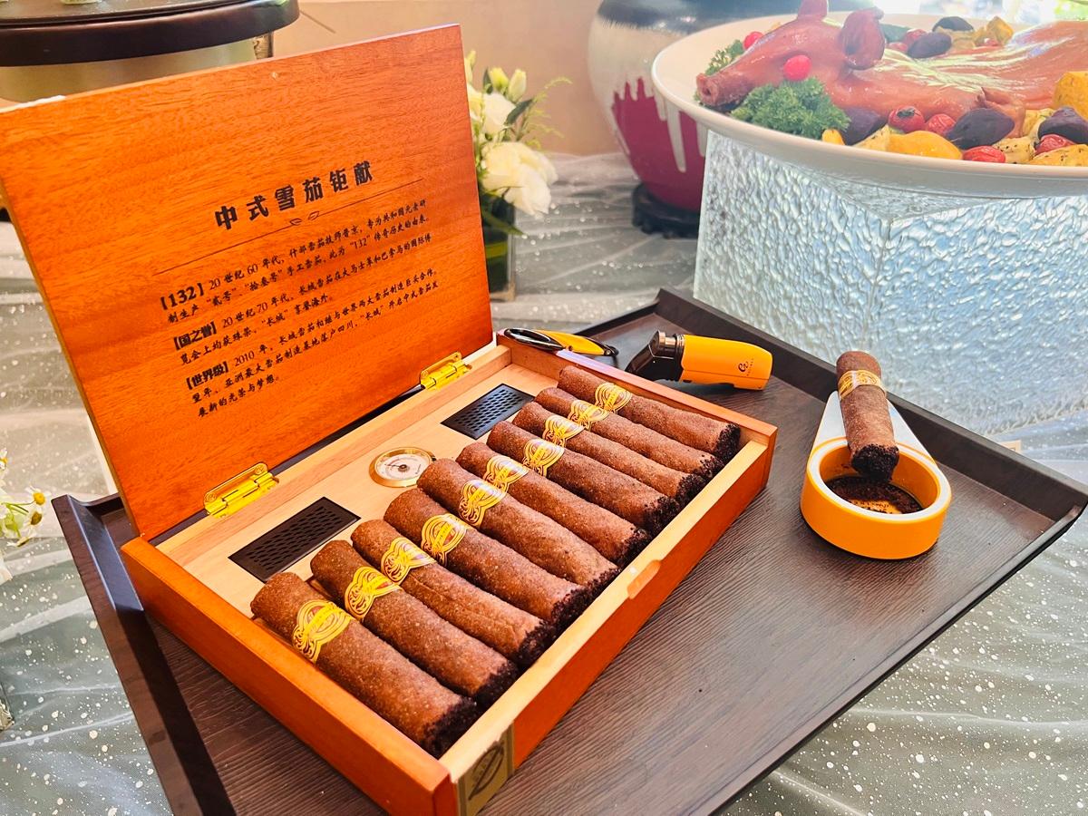 技能比武的赛场上,前有“老法师”,后有新青年。在一众新品中,一道名为“象形古巴雪茄”的菜肴绝对是全场最焦点。美臣大酒店的资深厨师卢惊涛向记者透露了并不复杂的菜谱,皮子是染了咖啡色的春卷皮,内嵌打成泥的虾仁,头部的颗粒物是用芝麻来装饰的。“真正吃功夫的是制作环节,要让它极为逼真,非常不容易。”凭着一股子对美食的热爱,几年前,美臣大酒店彭泽伟从服务员成功转岗厨师,这一次他带来了自创的融合法式和意式的低温和牛色拉。“低温的烹饪方式能最大程度保留牛肉的血红肌肉蛋白,保证食材的整体嫩度。”