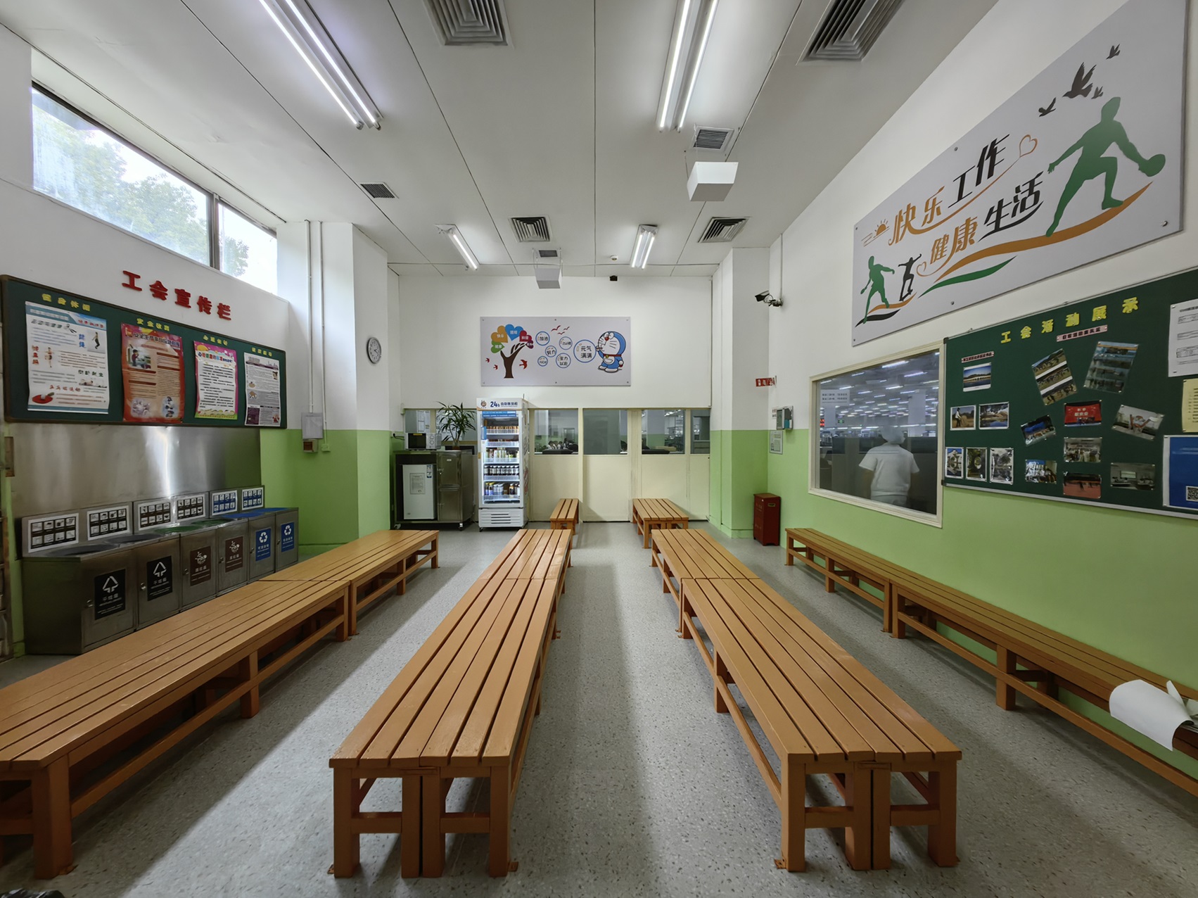 改造升级后的两间工间休息室焕然一新:电线开关重新布局,地面重新铺设柔软地垫,墙顶面、门扇和长凳经过精心粉刷恢复了生机。此外,休息室内还增添了冰箱、微波炉、筋膜枪等实用设备,以及便捷的移动售货机,满足职工多样化的需求。设施更加完善了,环境也更加优美了,这一变化不仅提升了职工的休息质量,也体现了企业工会对职工的关心关爱。