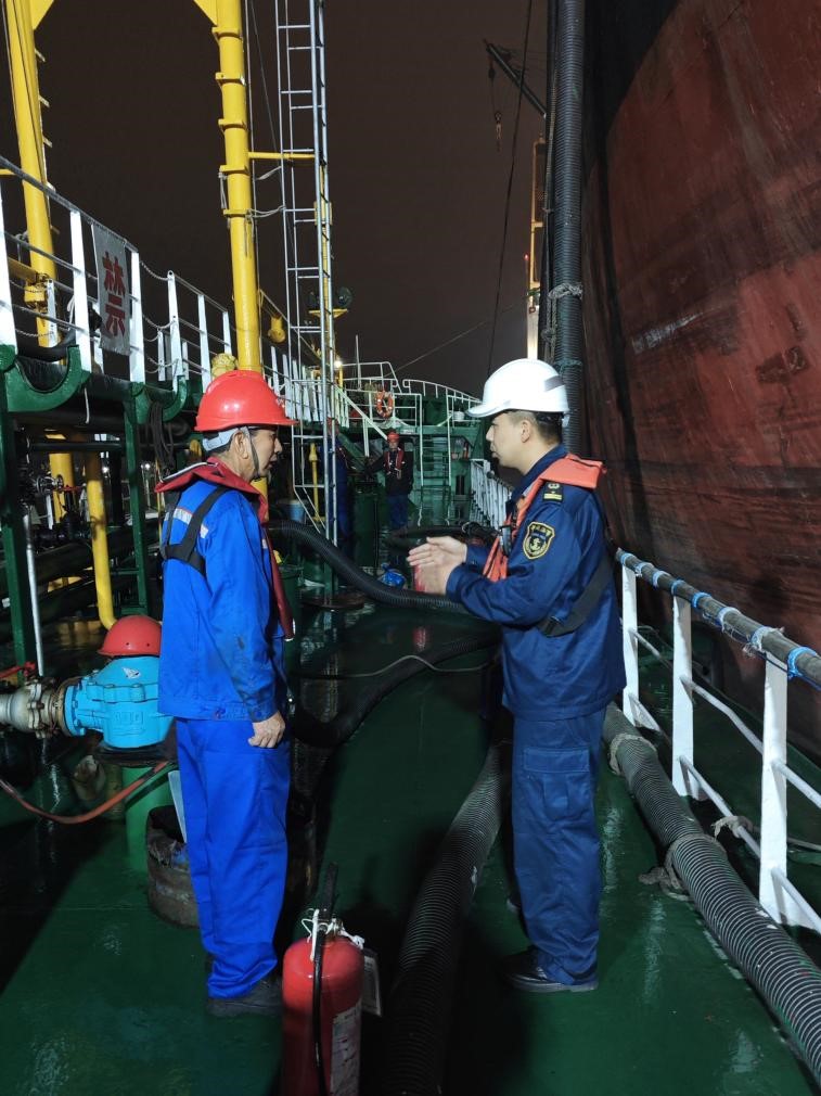 同时,闵行海事局对辖区供受油作业船舶开展多次夜间现场检查,并对辖区港内供受油作业船舶实行“精细化”全流程监管。船舶水上供油作业具有流动性强、活动范围广、作业频次高等特点,随着上海港航运服务业能级不断提升,“船对船”油类供受作业的安全和污染风险也在随之增加,一旦作业过程中存在违规行为,极易发生船舶污染事故。闵行海事局将紧盯辖区港内作业安全风险,以时时放心不下的责任感不断强化船舶供受油作业现场监管力度,全力保障第七届进博会圆满举行。