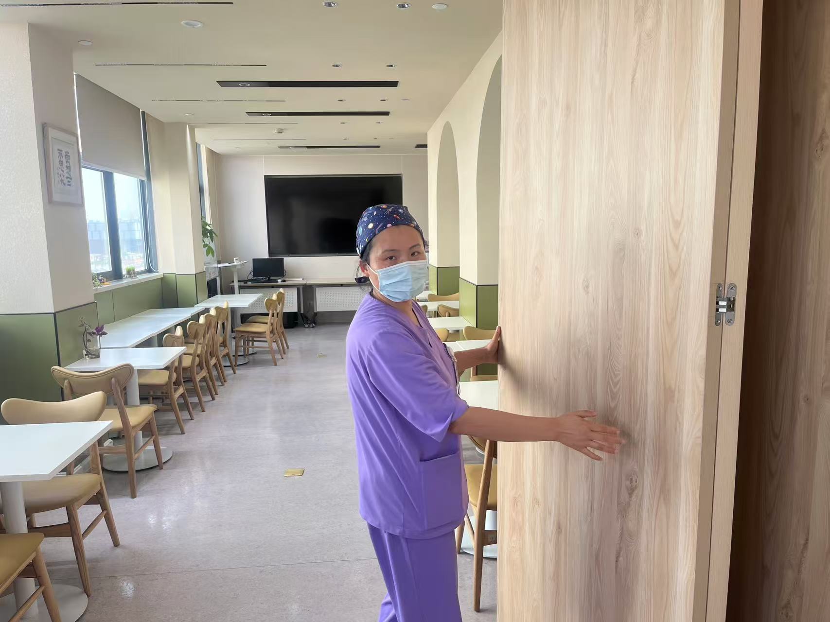 而此时, 重症医学科主任庄育刚终于完成了手头的工作,他也在休息室坐下来和记者打开了话匣子。他指着背后的定制座椅赞不绝口,“我们休息室的这几张椅子,我一坐上来就觉得腰部被托住了,一下子放松下来。”据了解,这些木椅都是前期经过讨论和设计,专门针对重症医学科医护人员长期工作需要弯腰的特点,设计了坐下放松时最合适的承托角度。庄育刚向记者举例,“我们夜班值班,很多时候每隔一会儿就有病人需要抢救,但这个时候真躺床上去,睡下去也不合适。现在有了这样的空间,让医护人员做一个短暂的充电,对他们来说是大有帮助的。”