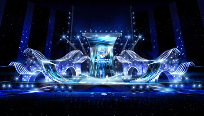 今年进博会中央广场人文舞台由上海广播电视台旗下的上海舞台技术研究所、舞美艺术中心设计呈现。舞台所主创团队围绕进博会“新时代 共享未来”的主题理念设计本次进博人文交流舞台,从中国灿烂的传统文化中吸取创作灵感,提取中式传统建筑“飞檐”和传统书画“卷轴“作为设计元素,将舞台造型与数字化的声光电科技手段有机融合,营造出层次错落、绚丽灵动的舞台氛围,勾勒出“飞檐之门”的轮廓感和立体感。