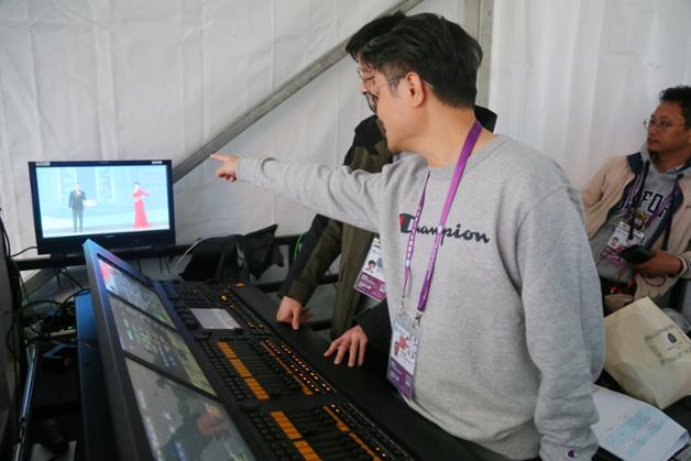 在现场调试阶段,台风天气更给施工带来了重重困难,原本有着一定防雨标准的LED屏无法承受台风天气带来的狂风暴雨。“防雨水是可以的,但那次台风康妮带来的雨,可以说是把屏幕全部浸在了水里。”谢渝熙透露,当时一部分高处的屏幕已经搭好,但积水实在严重,产生损坏,只能更换,为了减少损失,他们只能多加一道工序,为LED屏幕多加一处顶棚。
