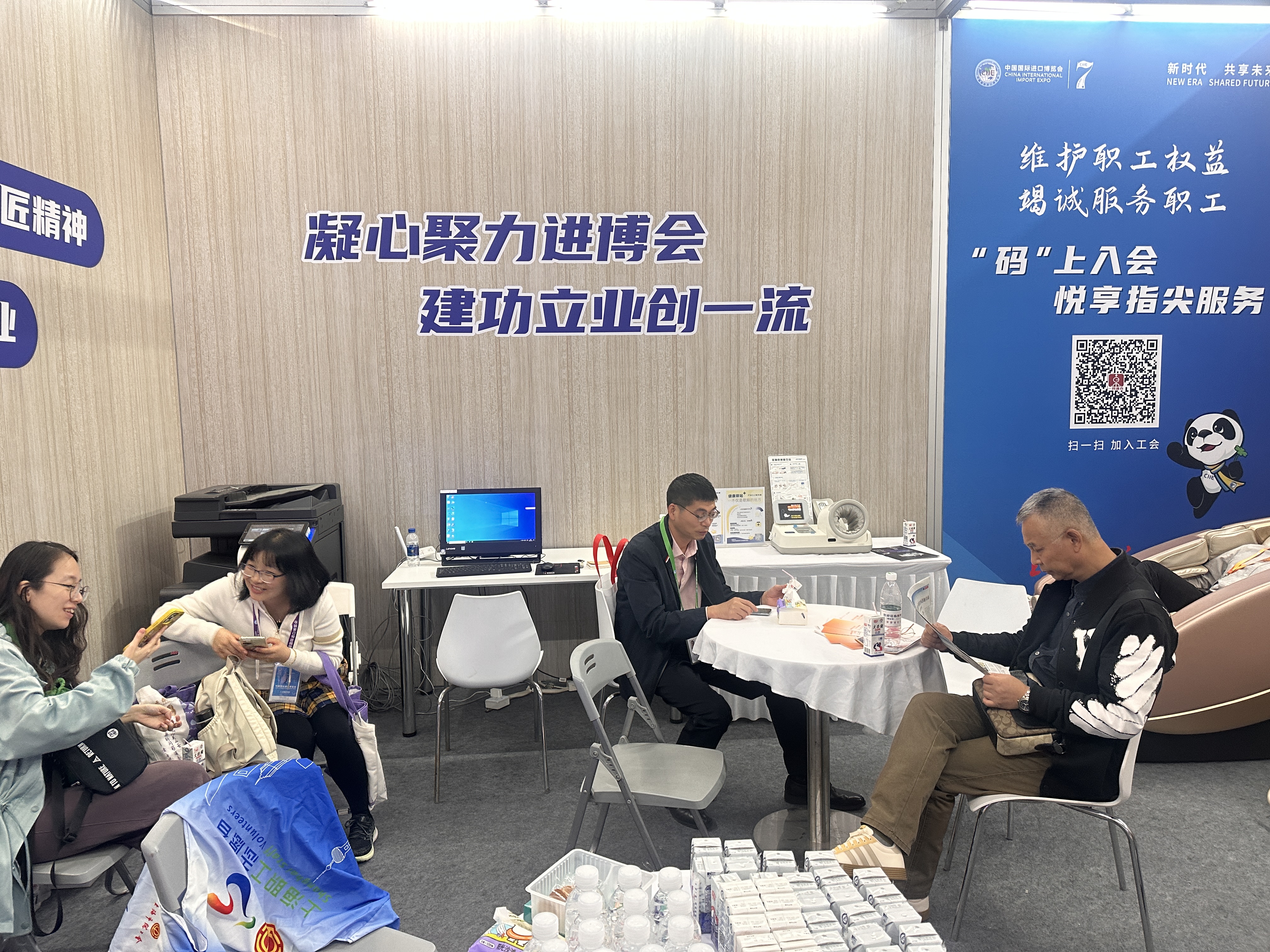 据了解,职工驿站的开门时间紧随进博会职工的“营业时间”,开馆前到位,人散了再走,对驿站的志愿者们提出了不小的挑战。