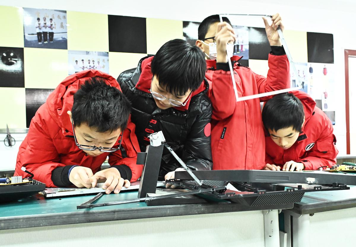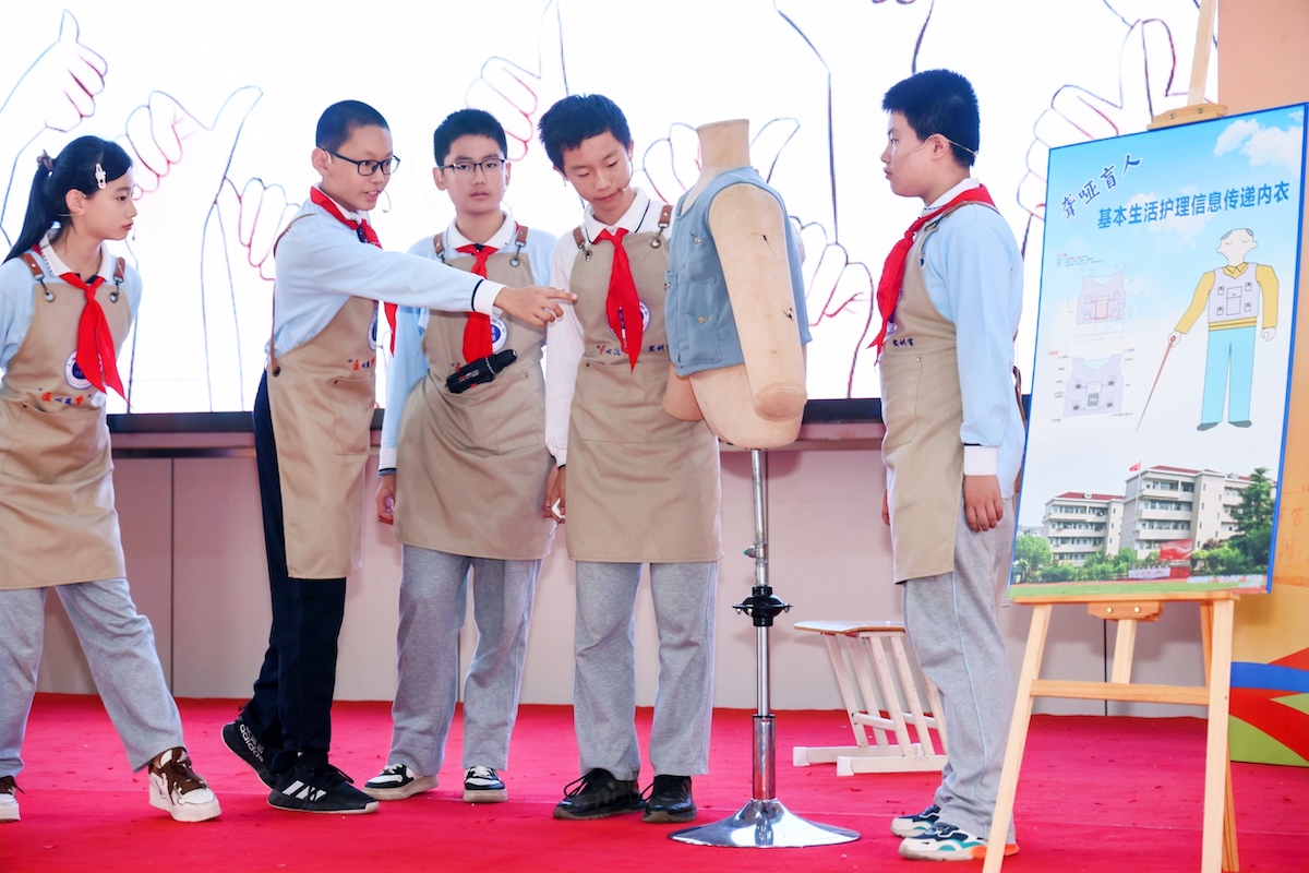 “认真、执着、创新,突破自我,服务他人。”亲身和劳模在一起,学生们耳濡目染,自然而然地践行着劳模精神。如今,他们的“创造性劳动”正不断深入与拓展。眼下,团队正致力于研究如何用防水材料改进“沟通内衣”,使其更适合日常穿戴,并探索如何让振动器更加轻便高效。此外,他们还计划开发“老人跌倒报警装置”,为更多需要帮助的人群提供智能化的解决方案。同时,大家也不忘参与守护校园行动,化身“小修匠”,修复操场跑道的破损、美术教室椅子塌陷、篮球架网损坏等问题,用行动诠释“劳动让生活更美好”的真谛。