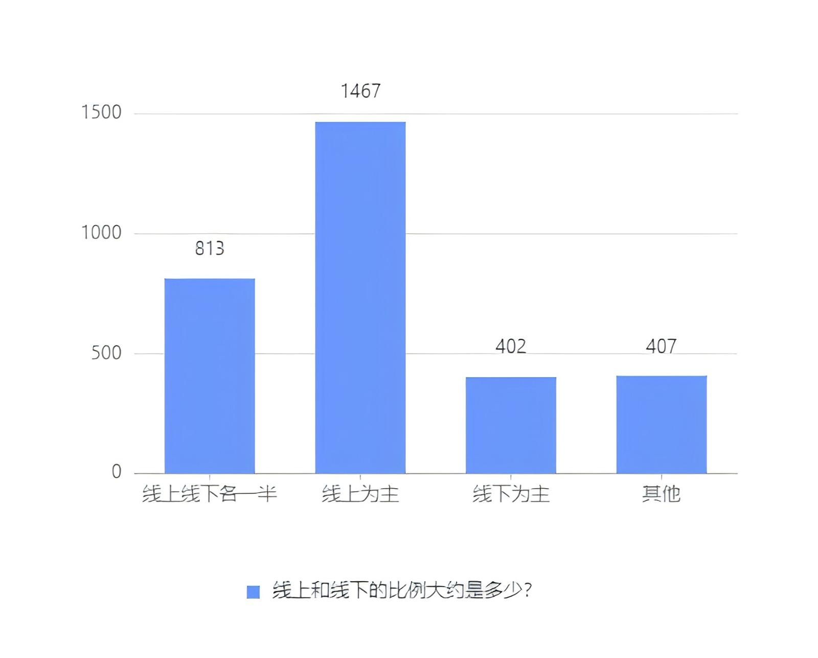 在微调查中,针对“在你今年购置的衣物、家居用品中,线上和线下购买的比例大约是多少?”这一问题,选择线下购物的受访者占一定比例,线上线下各占一半、线下为主的两个选项加起来占到了39%。
