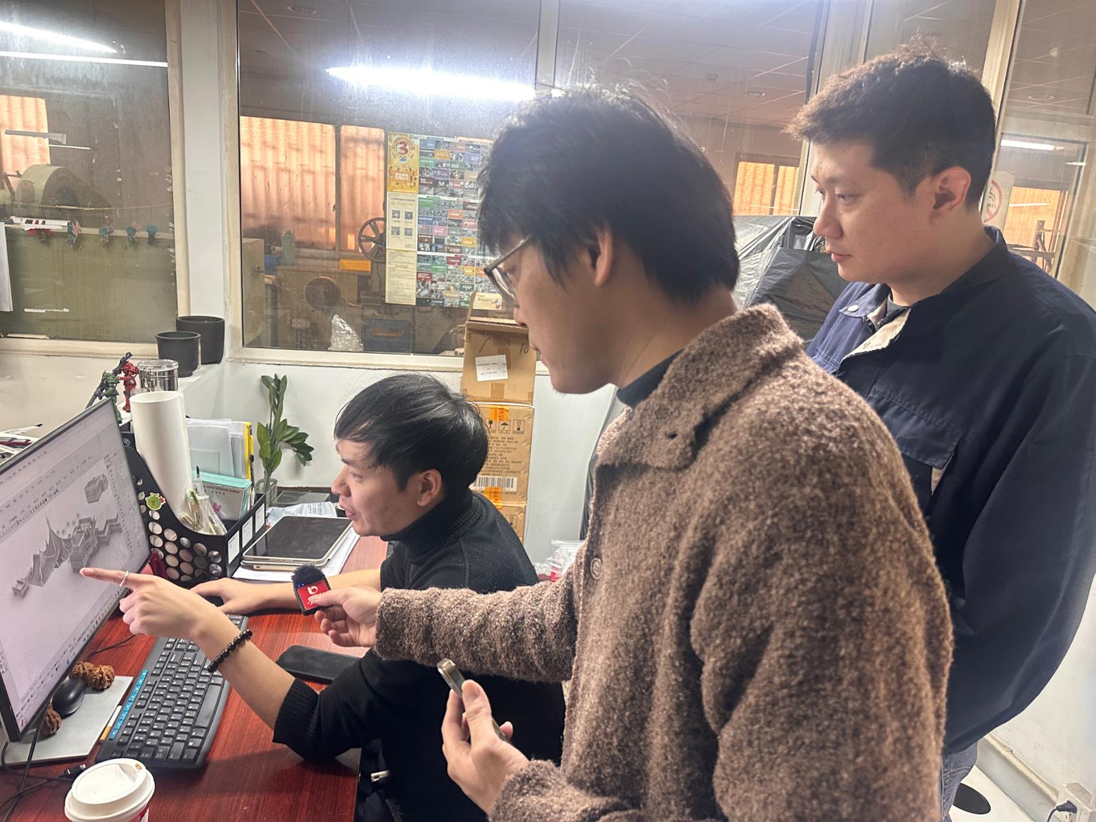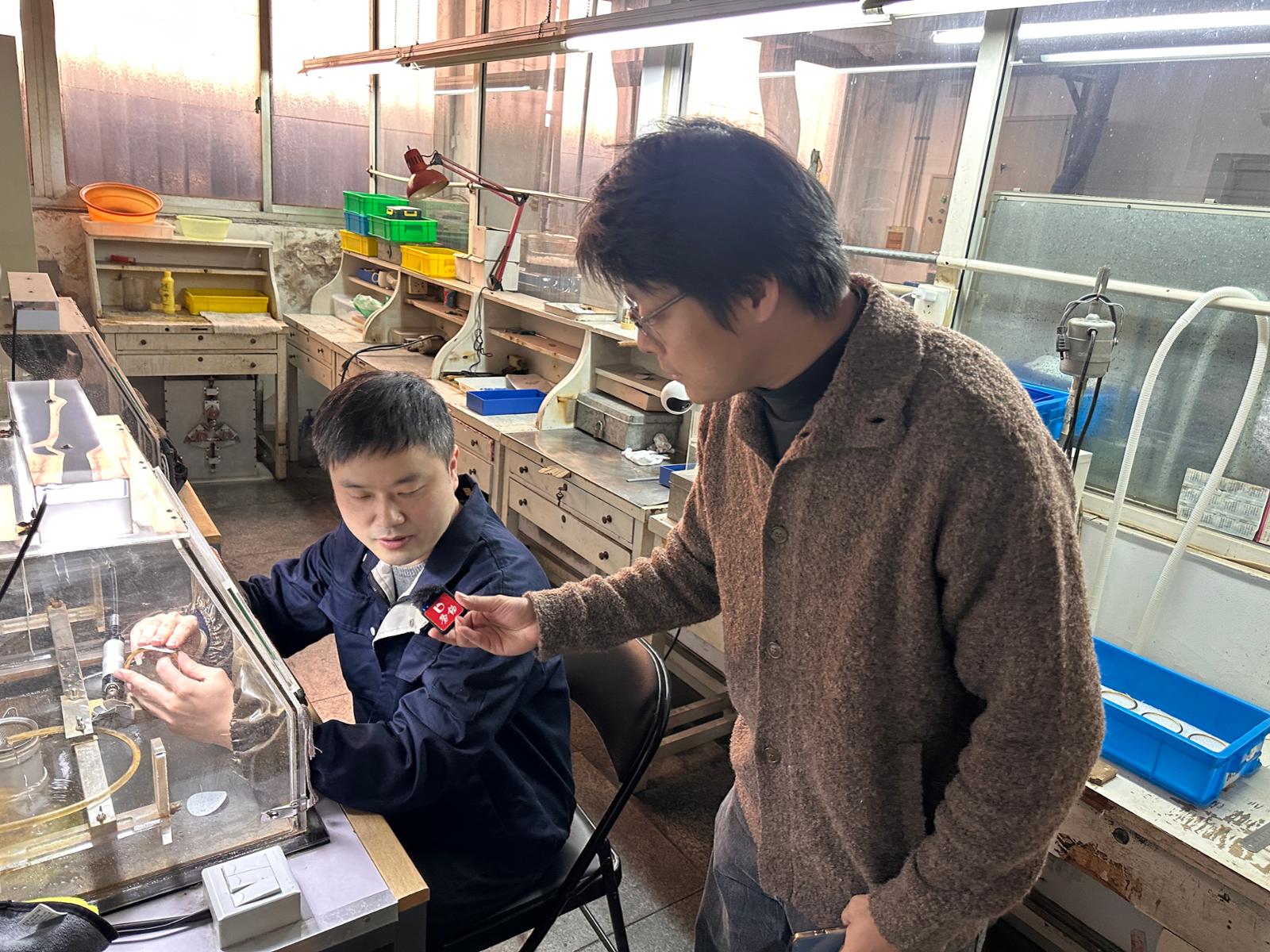 直播中,陈佳健展示了他在精加工、喷砂、干磨、水磨上的古韵金研磨工艺。“你可以看到,这支黄金手镯的颜色呈现均匀的哑光色彩,这是需要运用特殊的研磨技巧才能达到,否则一般的工艺会有色差和一些小点,在观感上会差很多。”陈佳健介绍到,工作中,他和团队一起,主动研发了不少工具。推出的“三角包伞针”打磨器,能对0.8毫米以下的饰品细节进行精雕细琢。此外,他还带领团队自主研发“圆筒镯整形机”,正圆率接近100%,产能提升了15倍,并由此盘活了4台闲置设备。