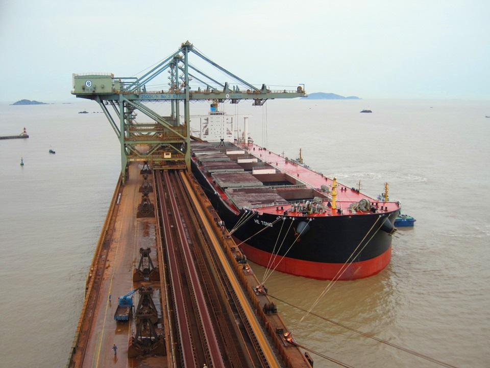 钢铁原料港口码头装卸船作业现场。受访对象供图