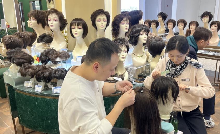正是从遮丑到追求美的转变,让马熙雯和团队不断精进制作假发的21道工序。从开料、整毛、磅发、排发、截发、洗水,到插发、卷发、烘发、刘海压坑、高车等,直至头皮制作、网帽制作、梳理、质检、做发型,这套百年技艺如今焕发新生,也给越来越多的人带去美的新体验。