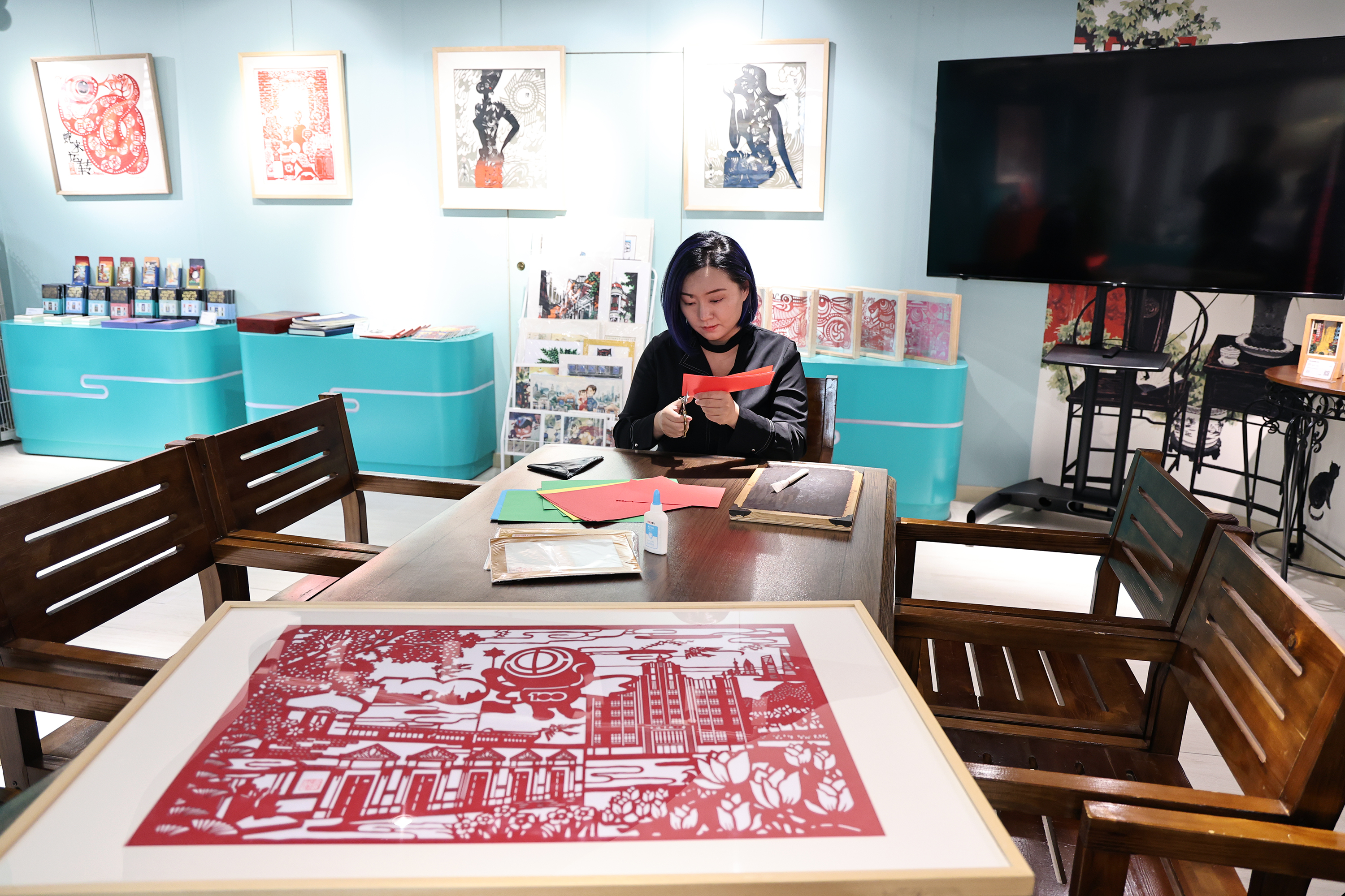 上周,在“人民城市 百年工运”文创设计大赛中,来自黄浦区的“90后”非遗传承人李诗忆凭借海派剪纸作品《工运百年 辉煌传承》摘得了比赛的一等奖。日前,记者前往李诗忆在田子坊里的工作室和展示厅,听她讲述一位年轻非遗传承人对于传统文化的海派理解。对于这幅花费一周多的时间制作的一等奖作品,李诗忆如此写道,“剪纸的线条连成永不凋零的春意盎然,同时也是对上海总工会百年征程的致敬,这或许就是非遗传承最动人的模样。”