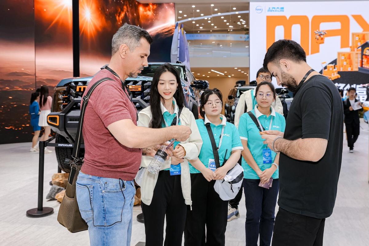 MG展台是吸引海外观众的焦点。品牌发布了全新的“YOUNG FOREVER智领风尚”主张,并带来多款重磅新车,包括Cyber X与Cyberster Black等创新车型。同时宣布与OPPO启动智能座舱战略合作,吸引了大量观众与媒体关注。作为首日上岗的名爵展台志愿者,团队成员面对海内外经销商关于全系车型出口政策的密集提问,迅速建立起临时沟通机制,依托跨部门协作网络,第一时间对接上汽国际业务团队,为各国客商精准匹配海外业务对接人。志愿者的应变力与专业度不仅赢得了来访客商的高度评价,也为上汽海外合作赢得了更多信任与机会。