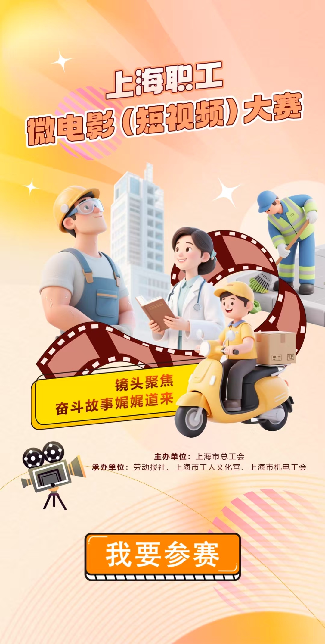 为展现职工风采,弘扬主旋律,开展上海职工微电影(短视频)大赛。用镜头语言讲述各行业劳动者的奋斗故事,展现“五个中心”建设中的产业变革,传递人民城市温度,彰显广大职工群众拼搏奋斗、勇于创新的精神风貌。