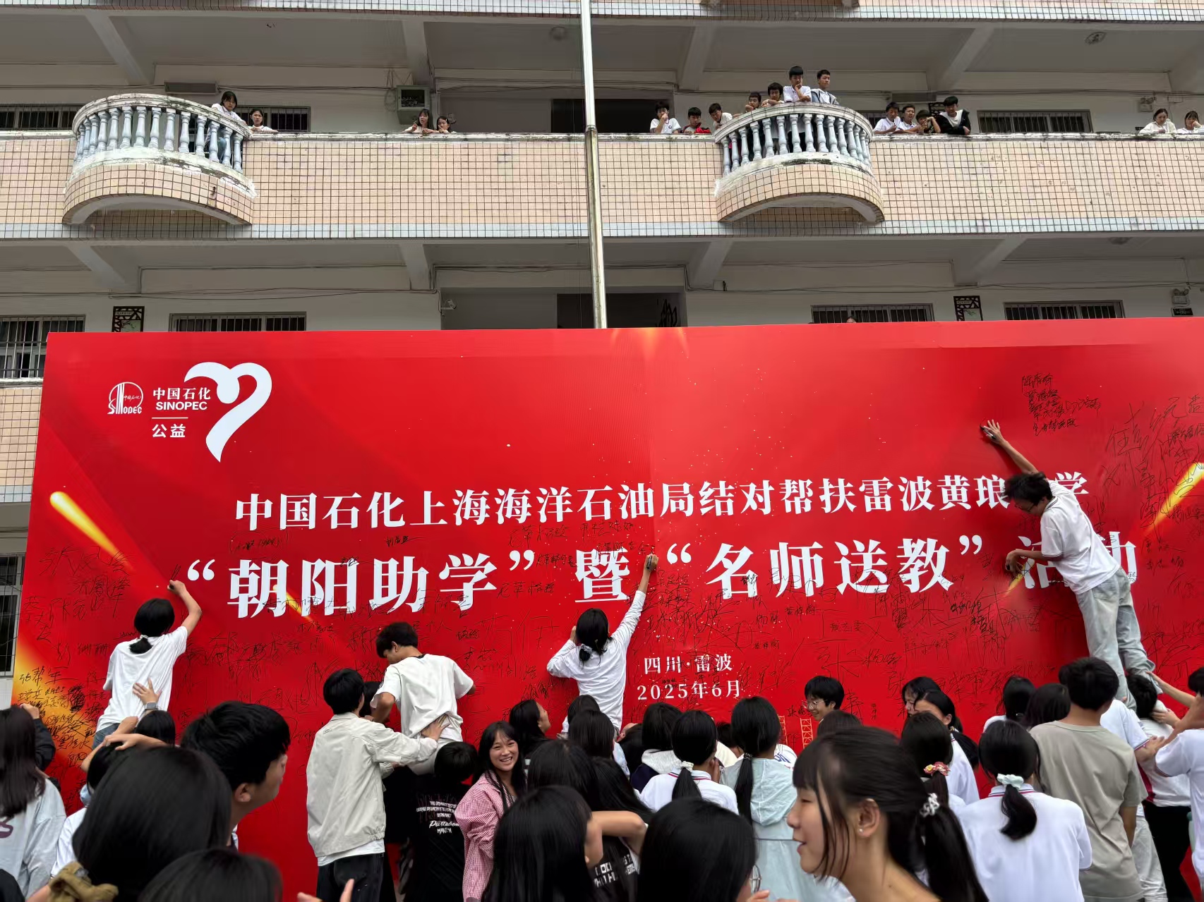 ▲上海海洋石油局牵手四川黄琅中学“朝阳助学”温暖启航