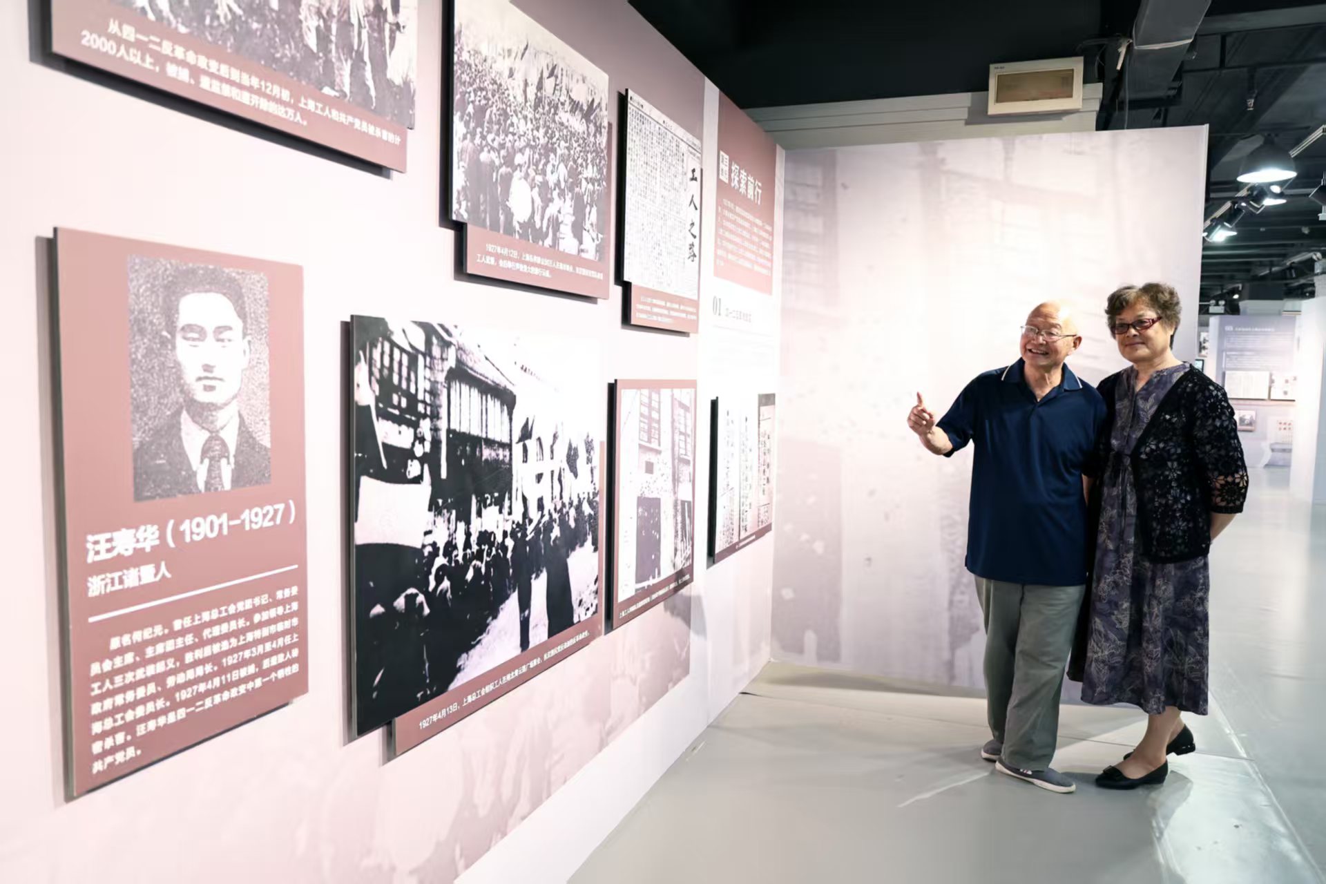 汪寿华外孙何利华与外孙媳观展