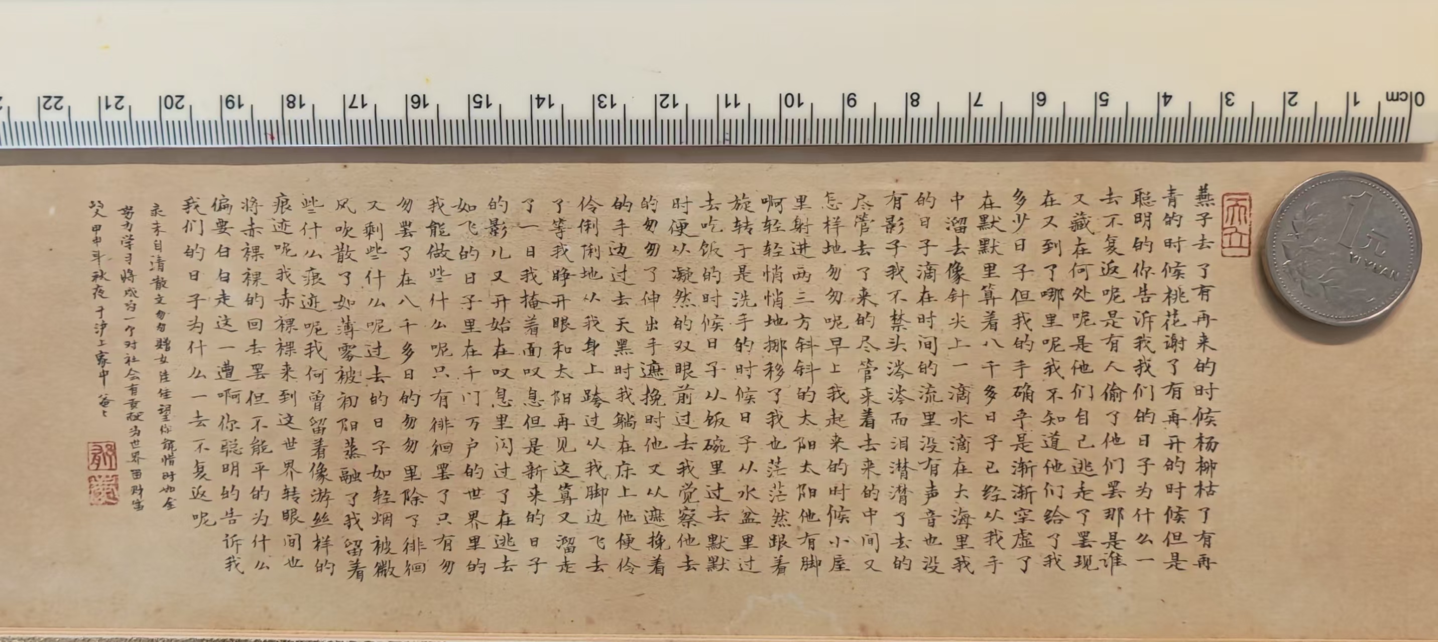 “大师擅长写小楷,字写得非常小,我一看惊为天人,就在业余时间跟着他学。”从2厘米、到1厘米,再到5毫米……“最厉害的时候,我可以写3毫米的字。”他告诉记者。