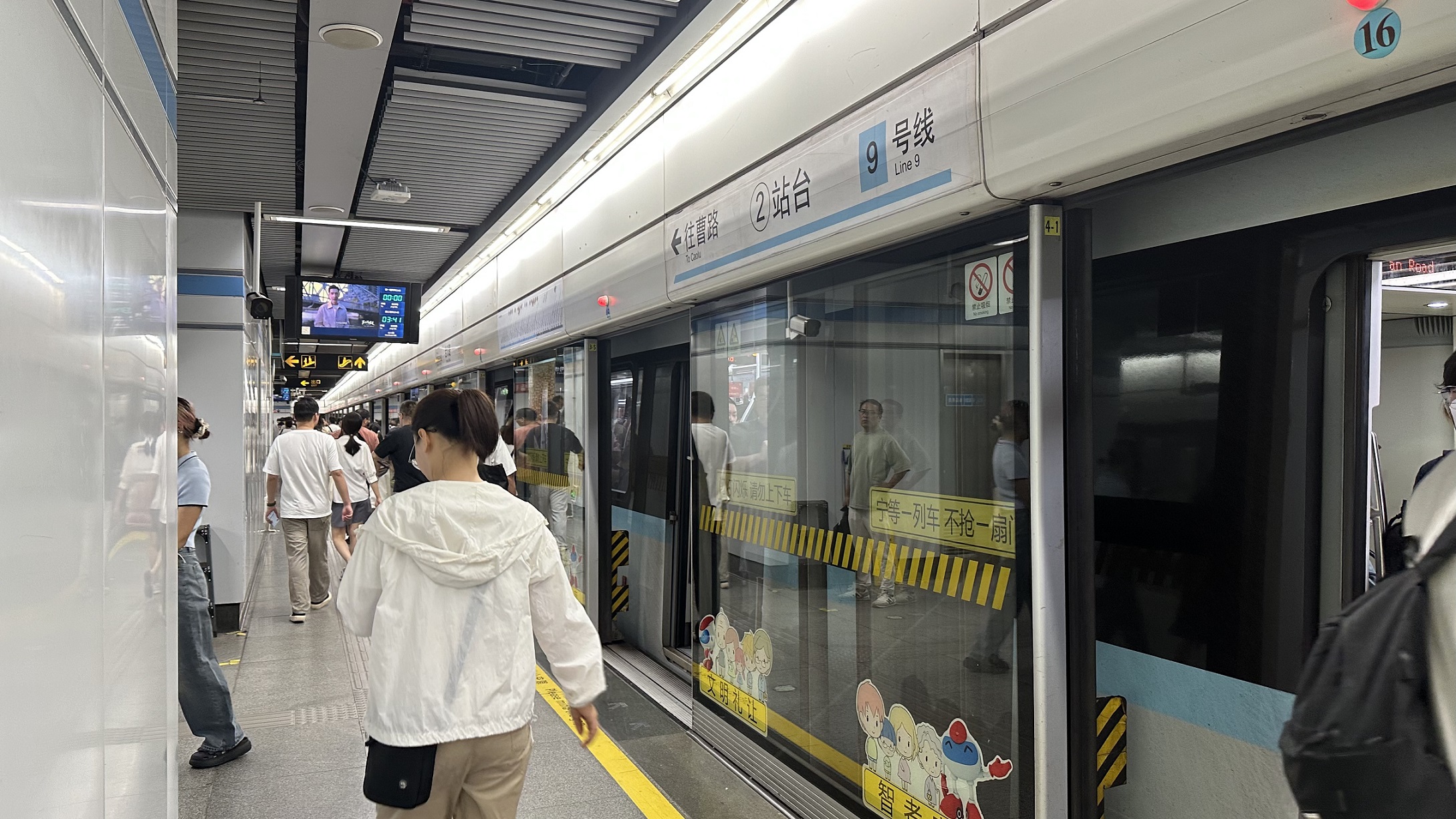 此外,记者发现,早高峰时段,9号线列车一直保持着一分三十秒一趟的高频次运行。每趟列车的拥挤程度不一。不过,在人流量最大的时段,部分乘客可能需要等待两班列车才能顺利上车,但这种“超拥挤”的时段持续时间并不长。