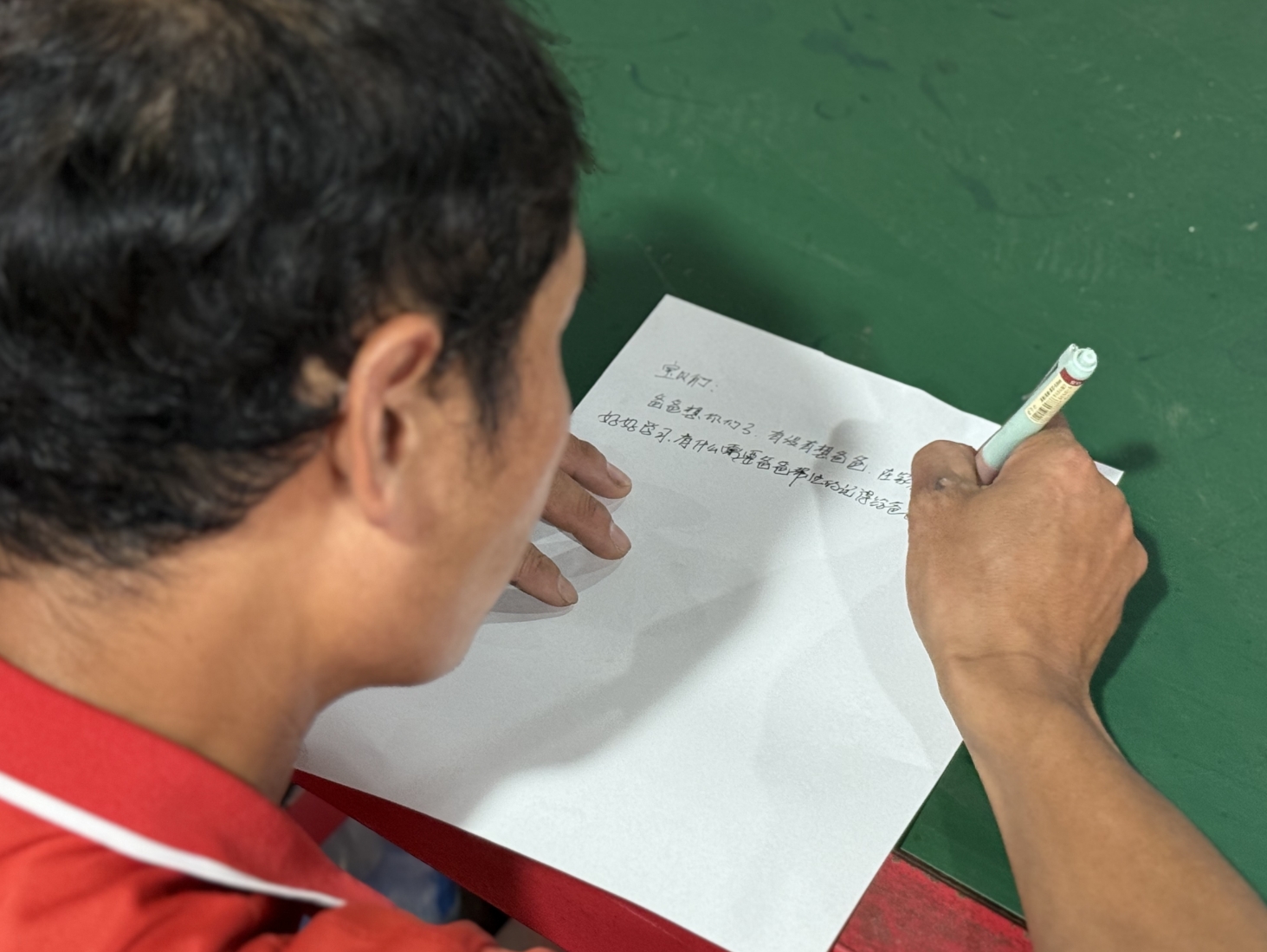 周香军对写字并不陌生。作为极兔速递的一名快递员,他每天开工前会用粗头水彩笔在包裹上把地址的楼栋号写大些。