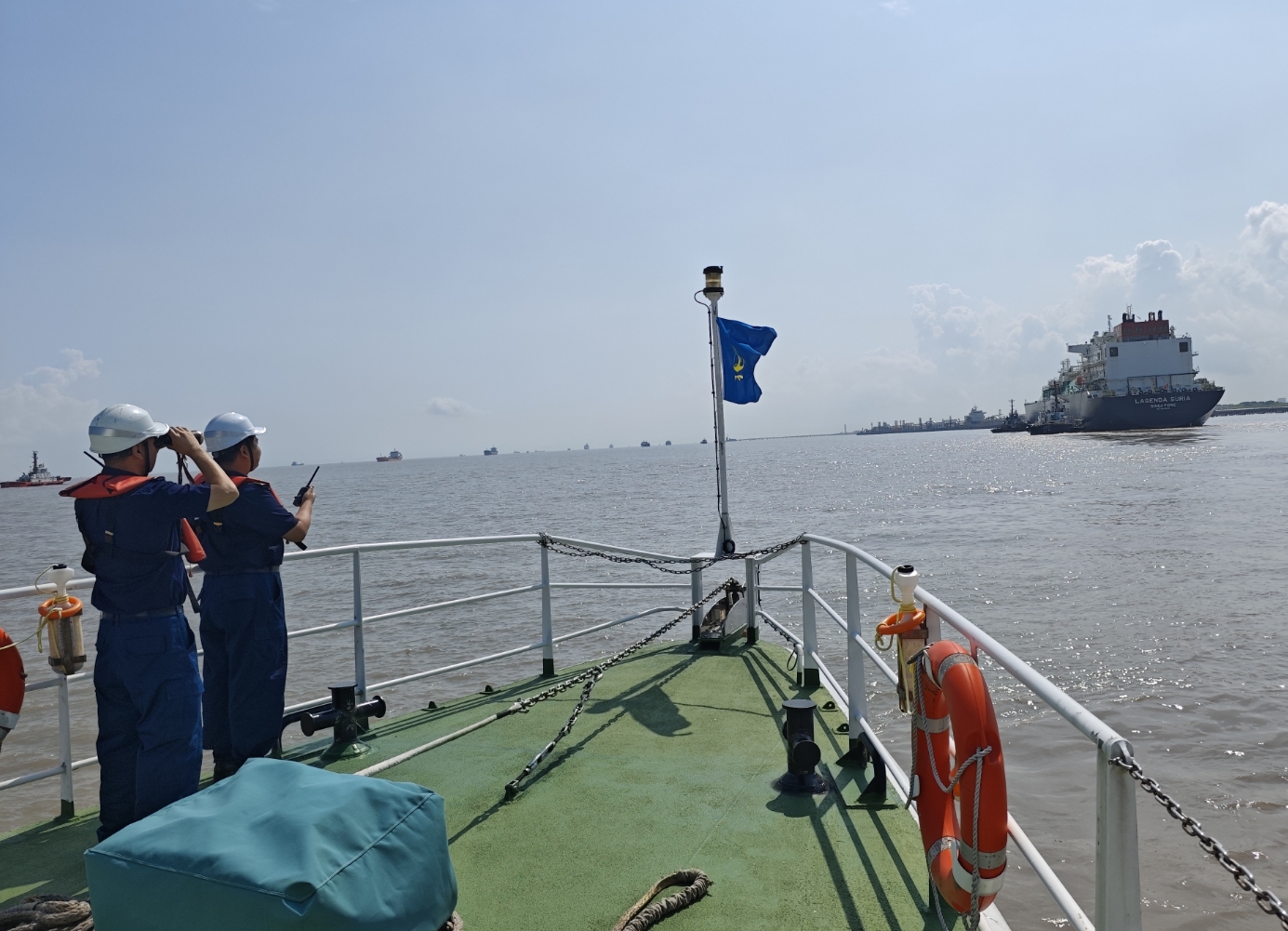 “为了保障节日期间水上交通安全与民生物资稳定供应,我们提前研判、周密部署,一方面强化气象海况预警和值班值守,依托智控一体化信息系统与现场巡航相结合,对南槽航道实施精准监管,保障船舶安全有序进出,筑牢水上交通安全防线。”浦东海事局相关负责人介绍,另一方面主动对接相关港航企业,动态掌握重点民生物资库存量及运输需求,根据到港时间和装卸计划,为民生物资运输船舶提供优先检查、优先审批、优先通航的全流程便捷服务,确保双节期间重点物资运输高效畅通。