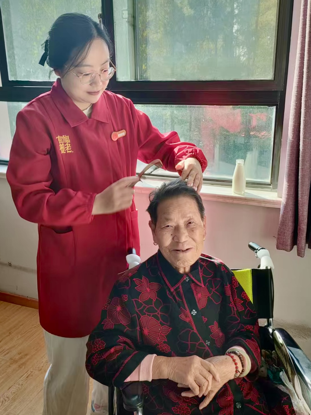 每天除了查房、指导员工的护理工作之外,谭青林还要随时关注老人们的一举一动,工作细而杂,但她能记住全院107位老人的名字和基本情况。“相比于医院里高强度的护理工作,我更喜欢和‘老宝贝’们在一起,听他们讲年轻时候的故事。”采访时,她笑着告诉记者,“我照顾的基本都是八九十岁的老人,还有的已是百岁高龄,他们就像是我的家人,我的爷爷奶奶,同事们经常开玩笑说我是90后照顾‘90后’。”