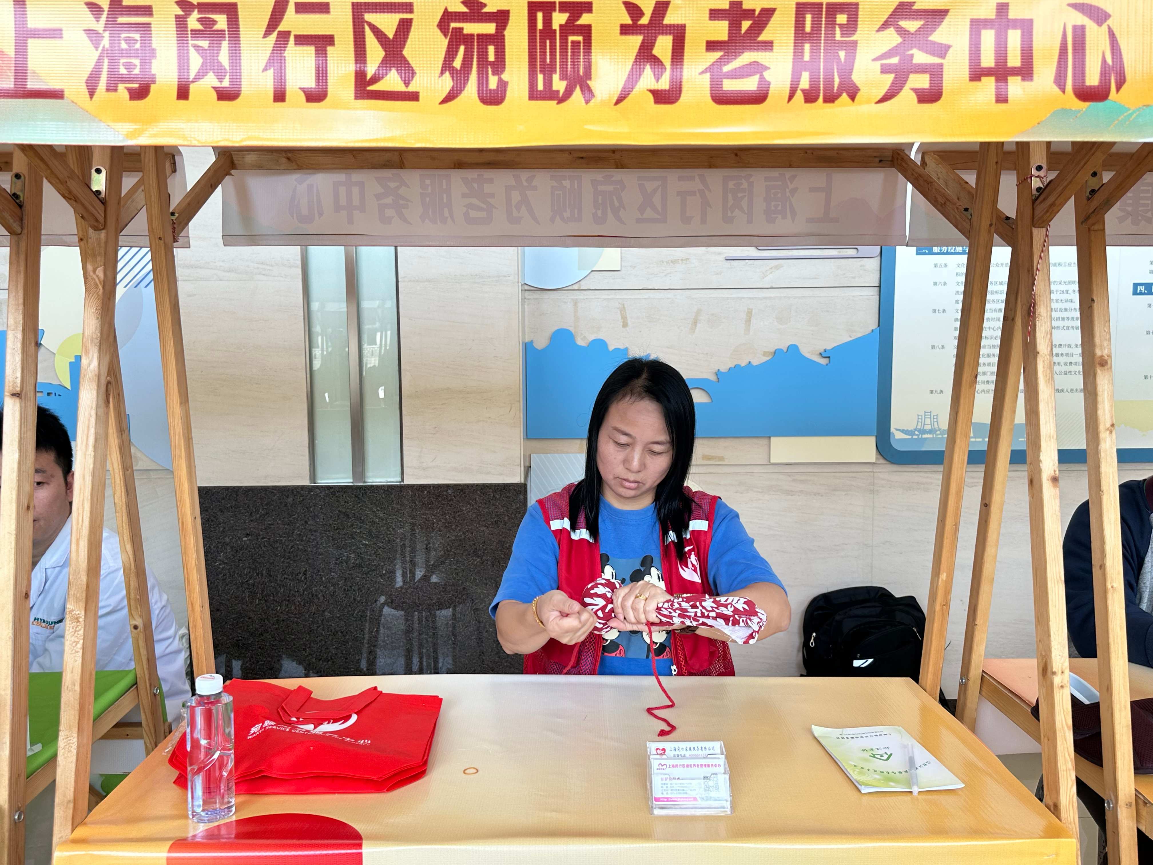 昨天下午,在位于七宝文体中心的一场“银龄新主场 岁月正青春”闵行区重阳节主题活动上,上海市劳动模范、上海宛心家庭服务有限公司客户经理张会兰出现在活动现场,她作为现场志愿者的一员,在为老服务咨询专区为前来参加活动的老人提供关于长护险等方面的咨询服务。