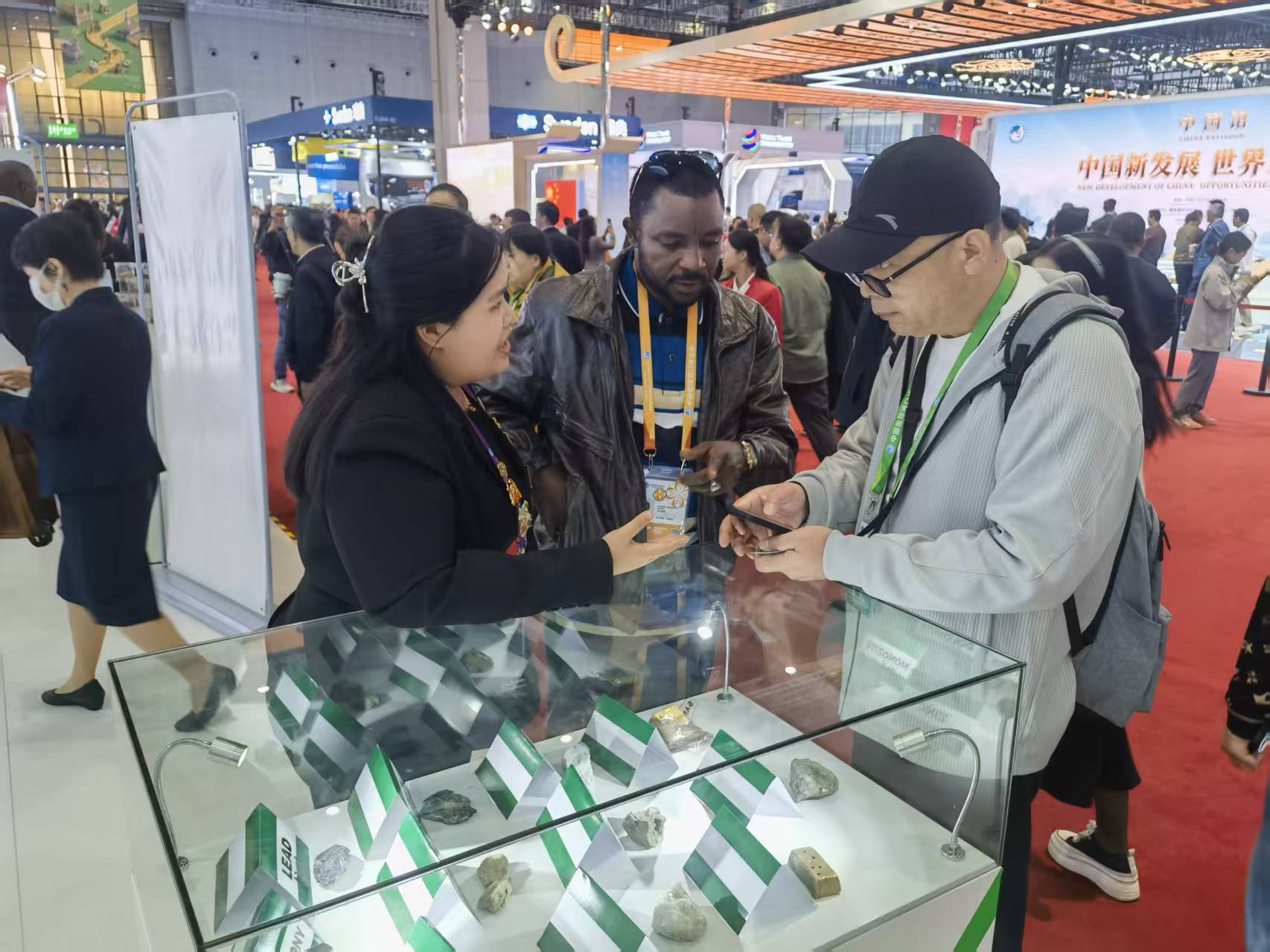 这些天的服务过程中,印象比较深刻的是,我在尼日利亚国家展台服务时,遇到了一位交易代表,他需要洽谈矿石合作,由于尼日利亚英语带有当地口音,他与对方交流受阻。我为他提供了帮助,最后他成功与尼日利亚的矿产品负责人加了微信,方便后续联系,我也很荣幸能为他们促成这次合作。