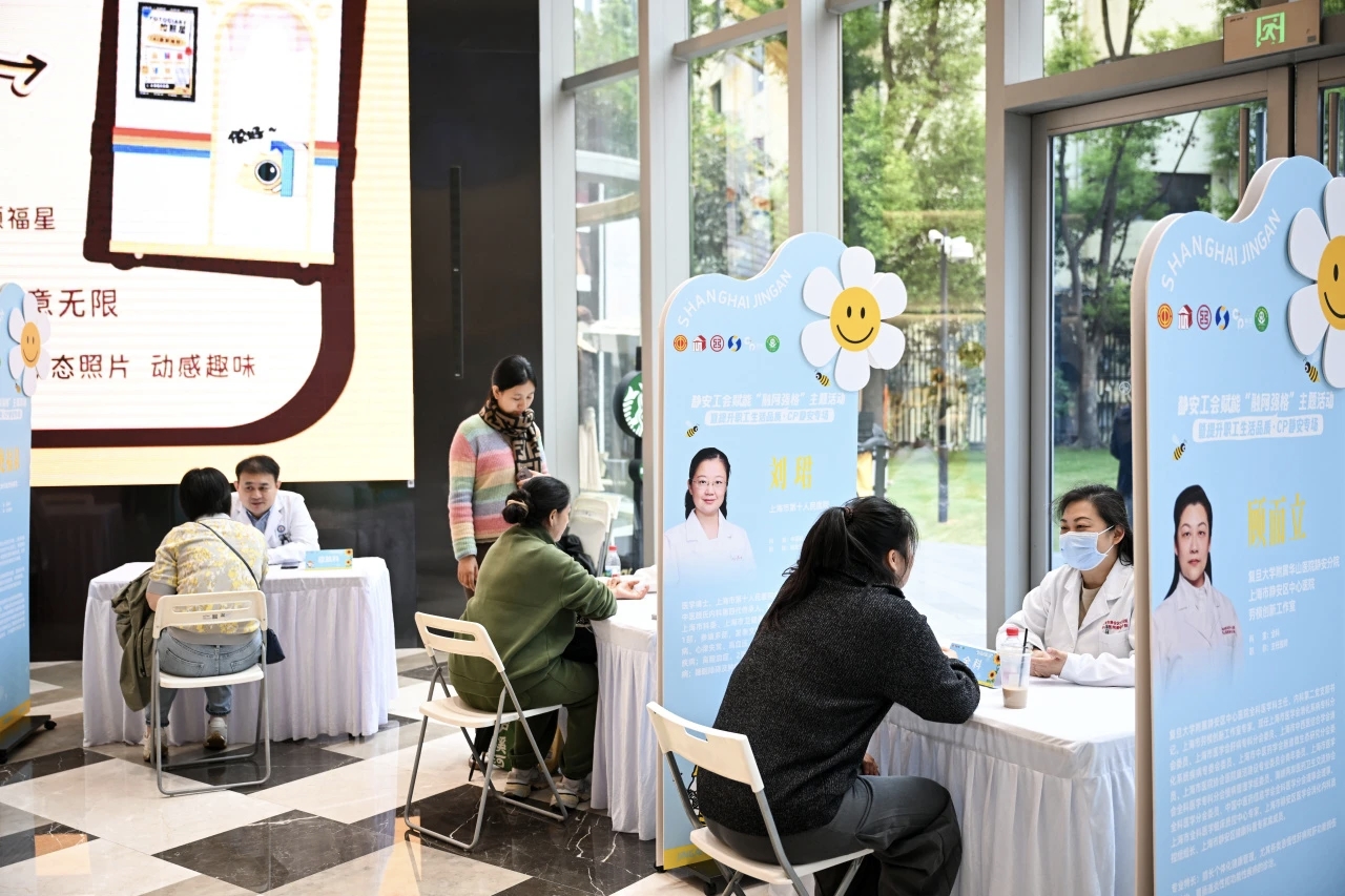 此外,CP静安一楼设六大主题空间,将工会服务转化为鲜活场景:静联智慧空间提供扫码便捷入会服务,静护稳岗空间开展就业指导、普法宣传,静育健康空间有劳模工匠专家免费问诊,静享幸福空间推出“幸福直通车・静博荟”专场,静蕴暖心空间亮相全市首家商圈24小时户外职工驿站,静玩潮创空间设非遗手作与二次元潮创体验,让职工直观感受工会服务温度。