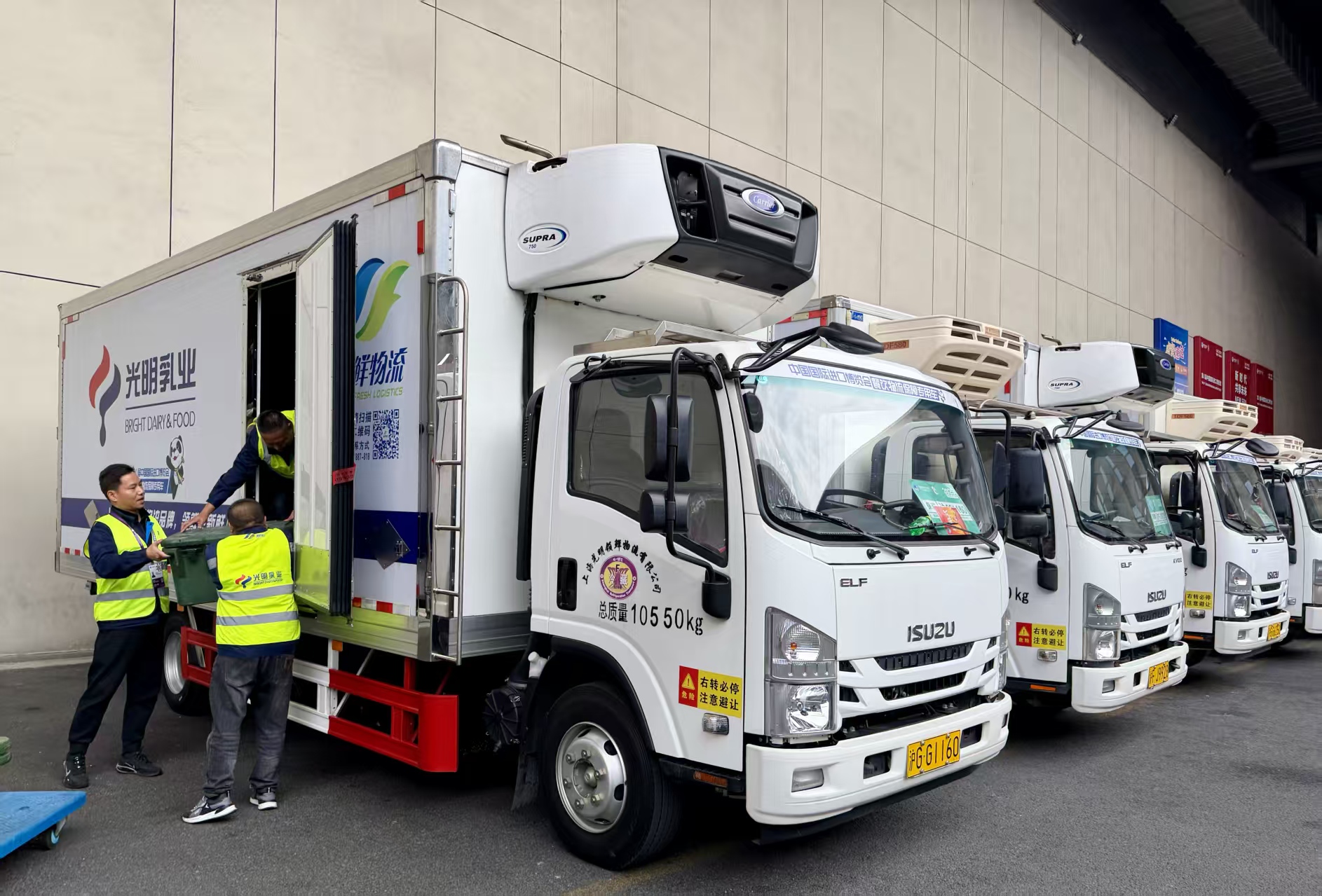 今年,光明食品集团作为进博会的“八届全勤生”,再次以参展商、采购商、服务商的三重身份,全方位、全领域、全渠道深度融入进博舞台,旗下光明领鲜物流是全国唯一一家连续八年服务进博会的食品物流企业。每天清晨6点,天刚蒙蒙亮,团队的驾驶员们就已经开着车赶往“四叶草”。40名经验丰富的驾驶员、35辆状态满格的冷链物流车辆,共同组成了领鲜物流进博保障工作的核心力量。“移动指挥中心”里,程东山的对讲机响个不停,他是这支团队的“大管家”,大小保障事宜都由他现场统筹。“每天的车辆调度安排、运输车辆车况安全检查,每一项细节都不能有半点马虎。”程东山的话语朴实而坚定。为确保万无一失,团队实行24小时全天候值守制度,严格执行“定人、定车、定线路、定时、定速、定客户”的精准管理模式。