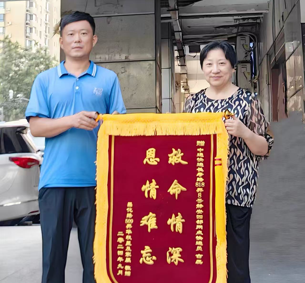 一个半月后,康复出院的老人在家人的搀扶下,提着一面锦旗找到中通网点,向古磊表达感激之情。同时,为表彰古磊见义勇为的行为,2024年9月,依据《中通快递集团表彰奖励管理办法》,古磊被授予“中通正能量”荣誉称号,同时给予现金奖励。